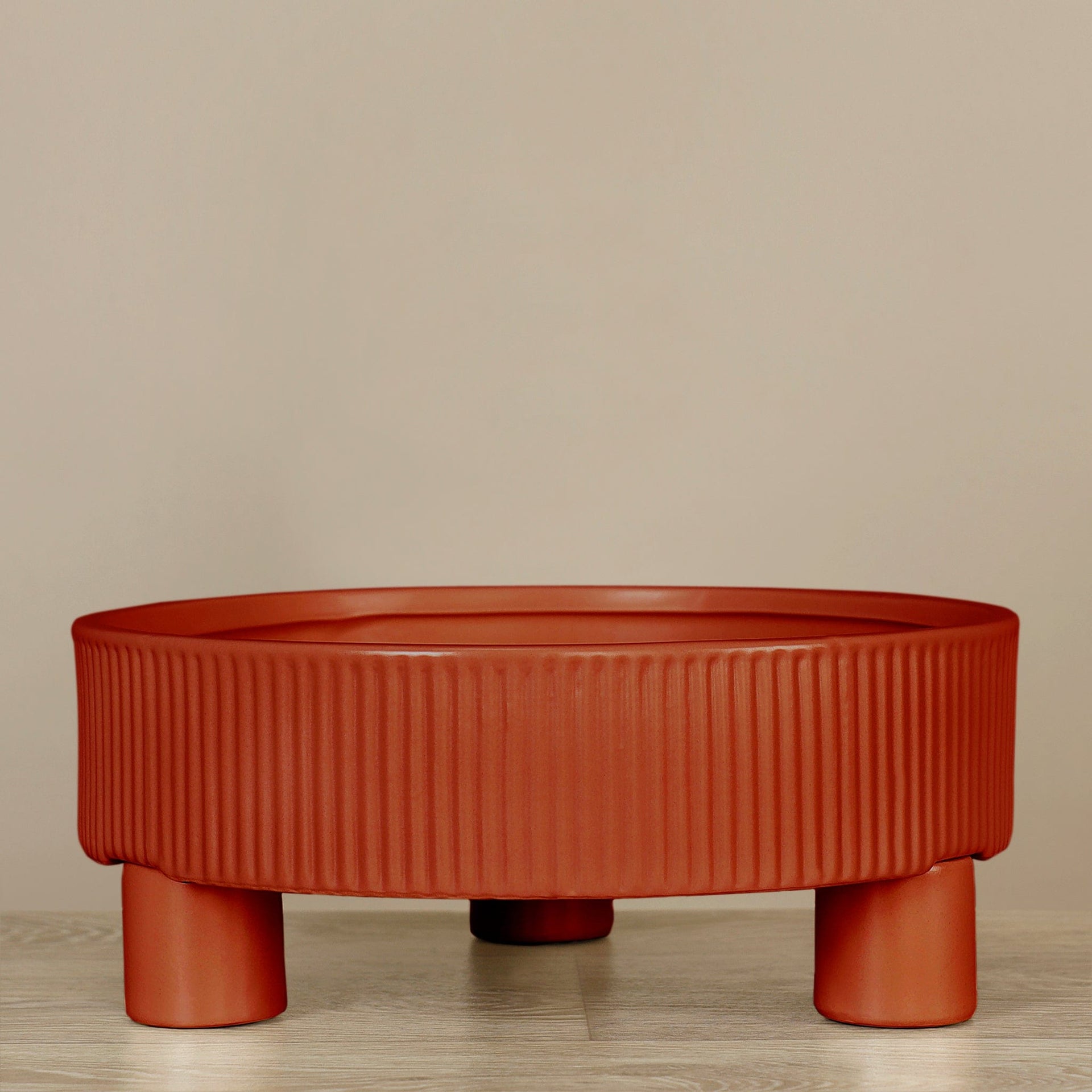 مزهرية سيراميك أنيقة بلون بني، تصميم بسيط يناسب الديكور المنزلي والمكتبي.