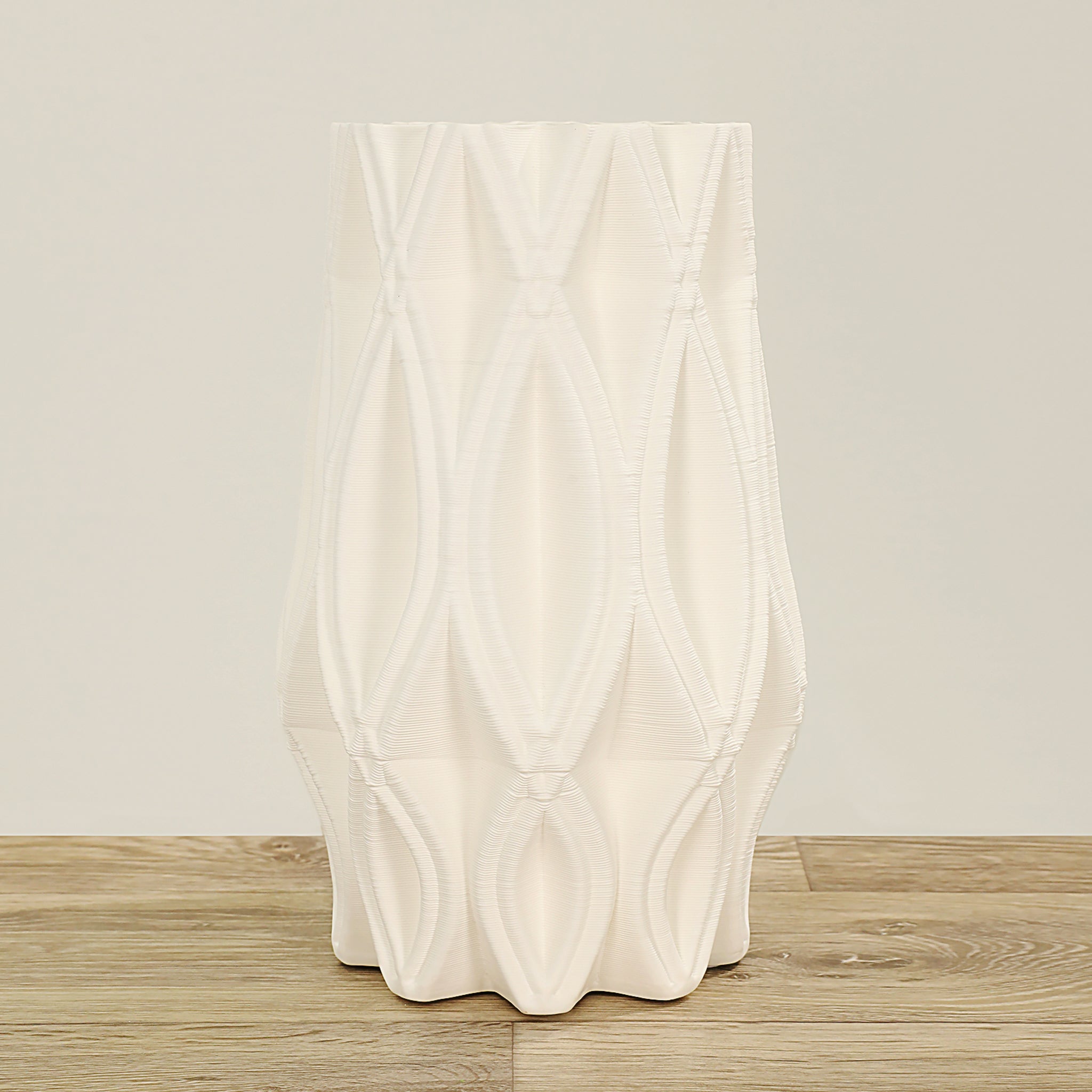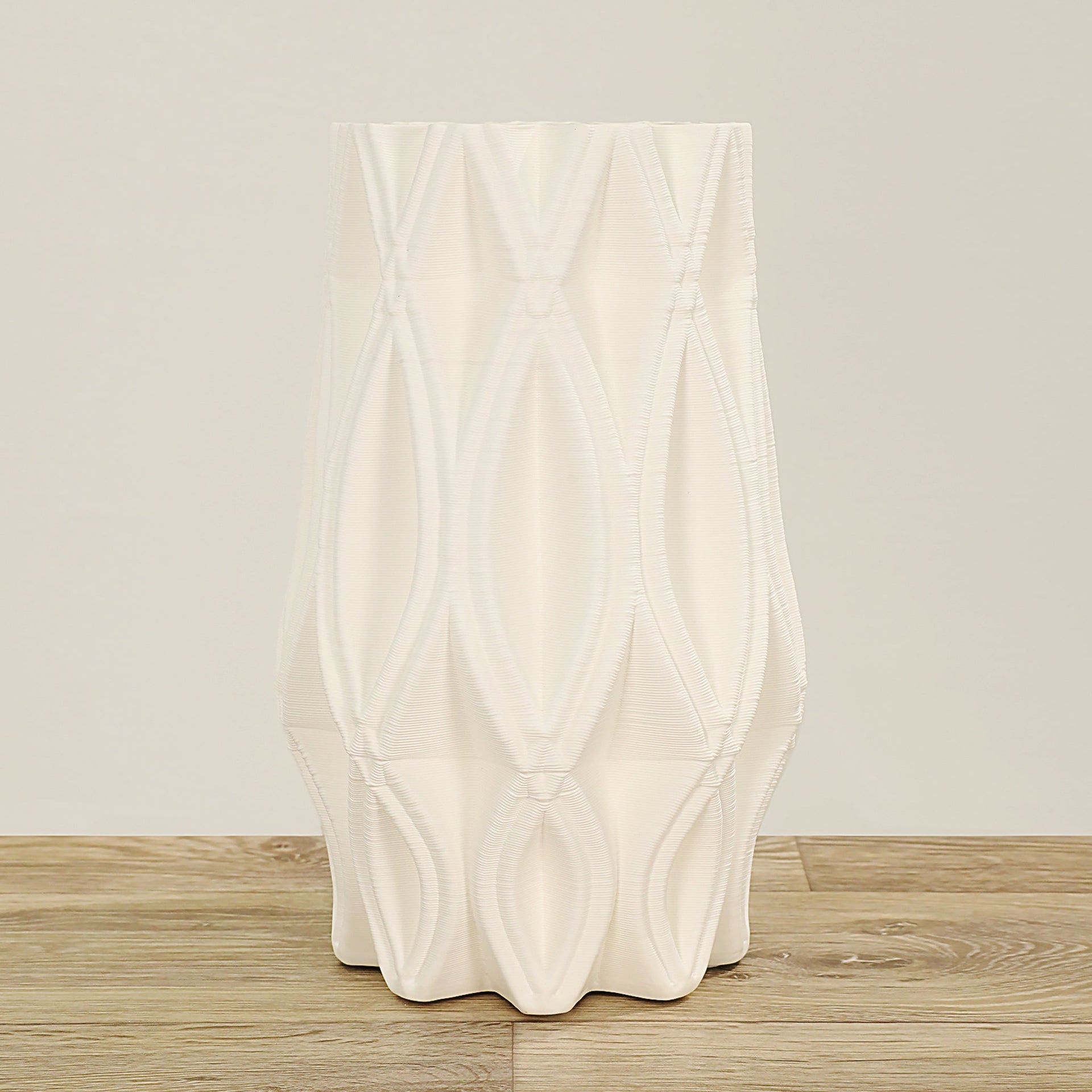 مزهرية أنيقة من السيراميك بتصميم مطبوع ثلاثي الأبعاد، تناسب الديكور الداخلي بلون أبيض عاجي هادئ.