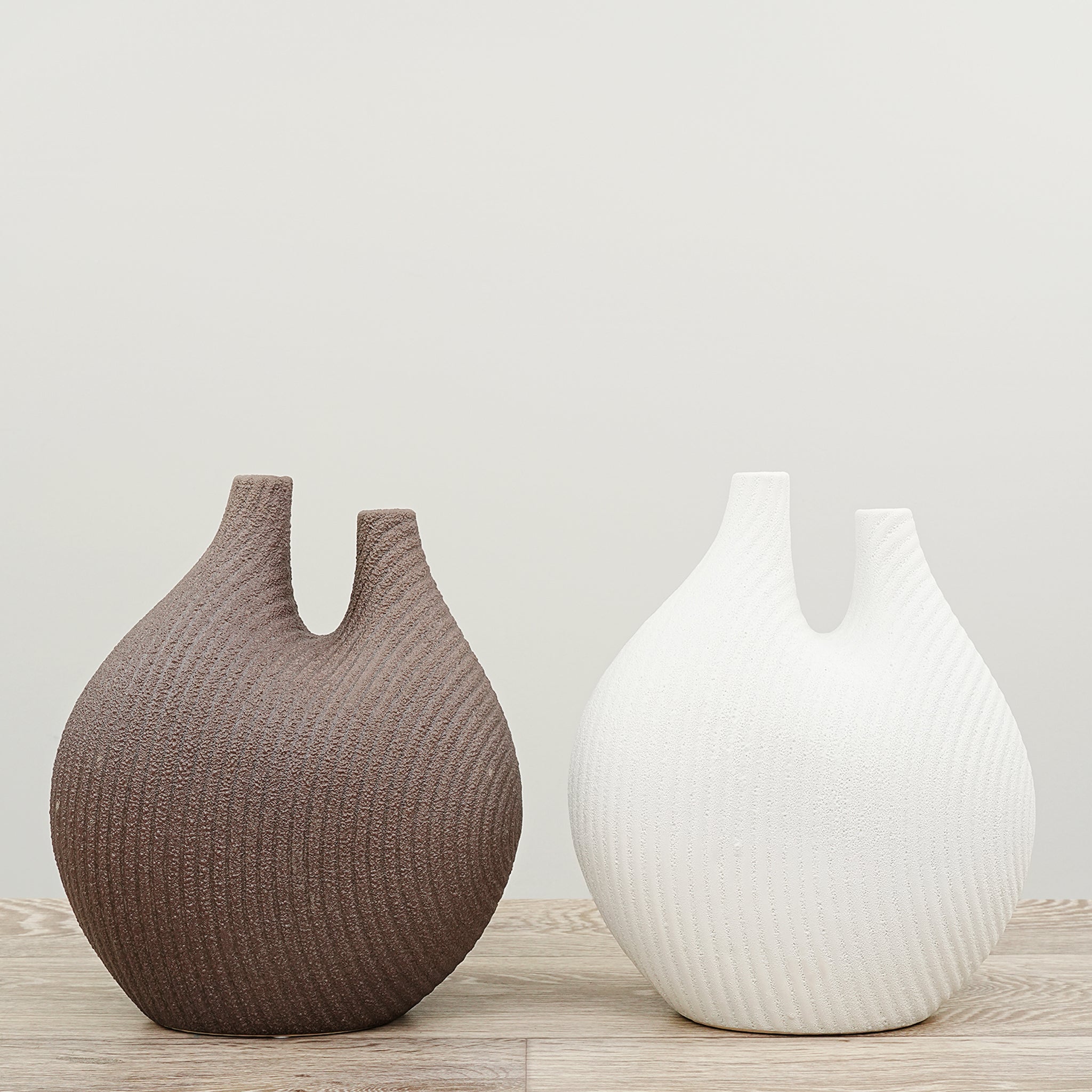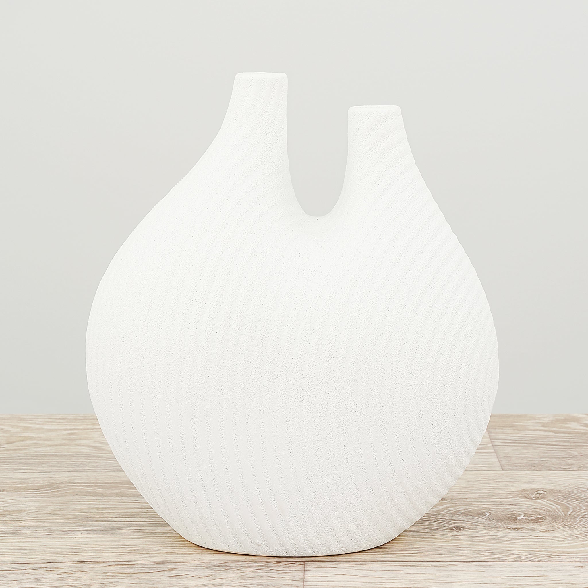 مزهرية سيراميك بلون أبيض نقي وتصميم أنيق وبسيط يضيف لمسة جمالية وعصرية لأي مساحة داخلية. تناسب ترتيب الأزهار الطازجة والجافة وتعمل كقطعة ديكور مميزة توحي بالهدوء والنظافة البصرية.