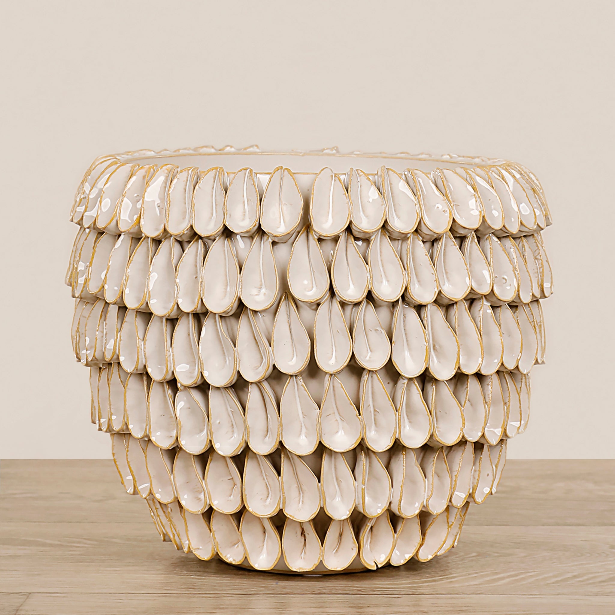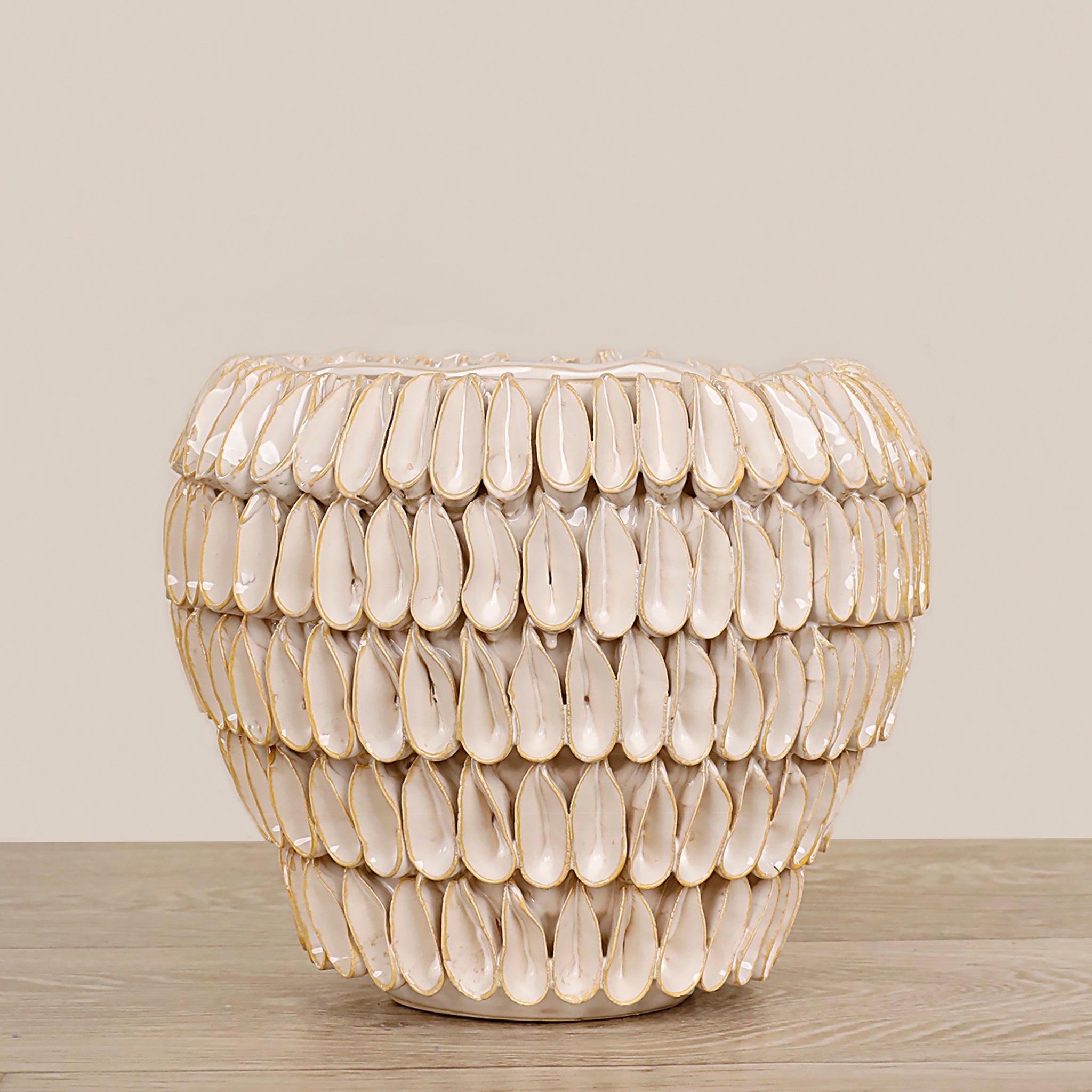 امنح مساحتك لمسة من الأناقة العصرية مع مزهرية سيراميكية مصممة بعناية. مناسبة لعرض الزهور الصناعية، وتبدو رائعة أيضاً كمقطوعة ديكور منفردة، مضيفة عمقًا وجاذبية لأي مكان.