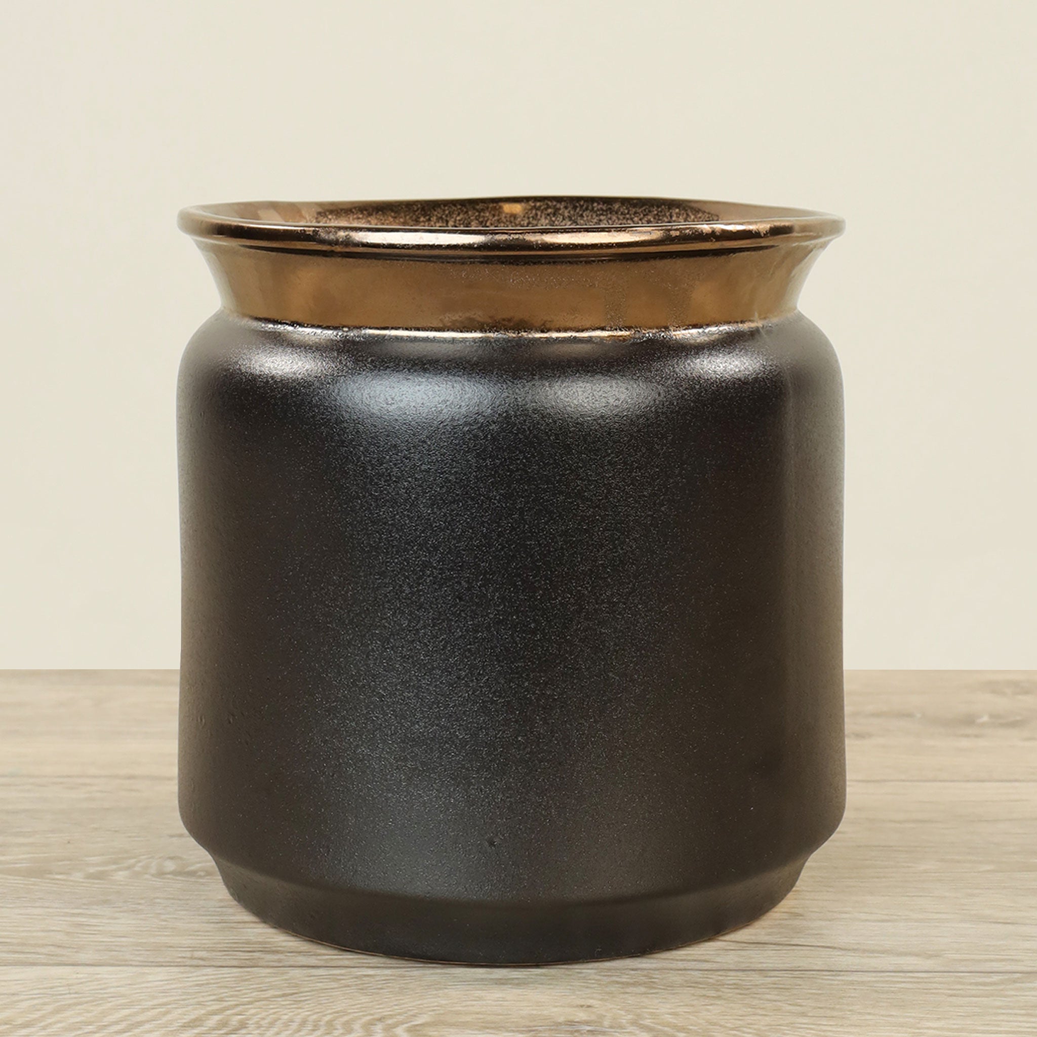 تُعتبر هذه المزهرية الخزفية السوداء تحفة تصميمية معاصرة تجمع بين البساطة والأناقة. شكلها النحتي ولمستها النهائية غير اللامعة يخلق نقطة ارتكاز بصري مميزة تناسب الديكورات الداخلية الحديثة والانتقائية.