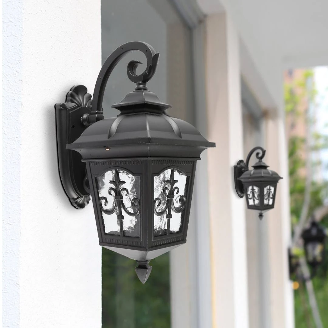 فانوس جداري أسود صغير خارجي — قاعدة لمبة E27