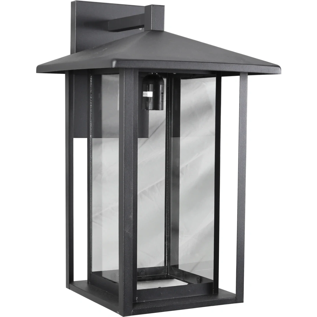 فانوس جداري كبير — قزاز شفاف E27 أسود (خارجي)