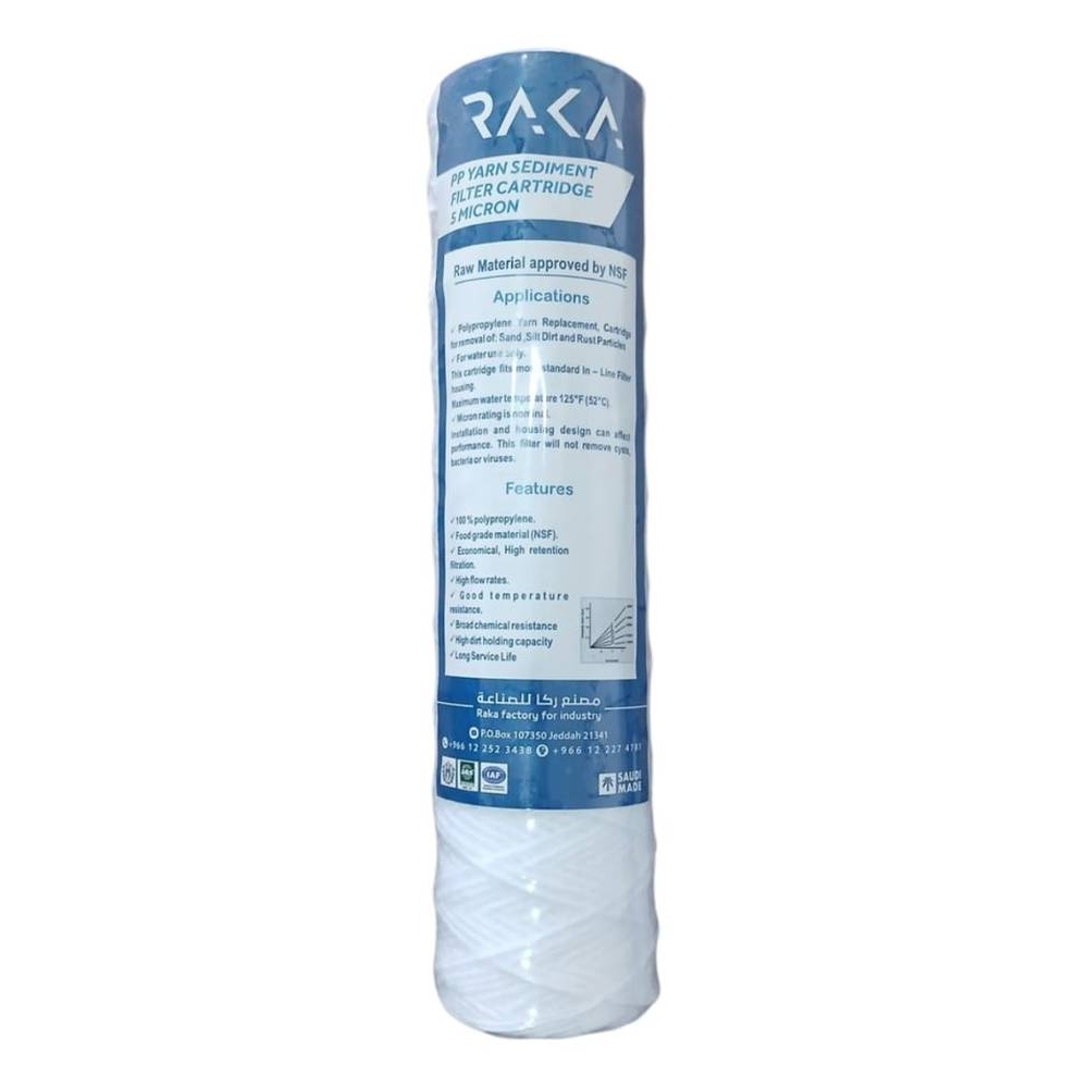 فلتر شمعة خيوط بطول 10 إنش، مصنوع من خيوط بولي بروبيلين 100% بمادة خام معتمدة من NSF. مصمم لإزالة الجزيئات الصلبة مثل الرمل والطمي والأوساخ وجزيئات الصدأ من مياه الشرب والمياه العامة، مناسب للاستخدام مع معظم أغلفة الفلاتر القياسية.