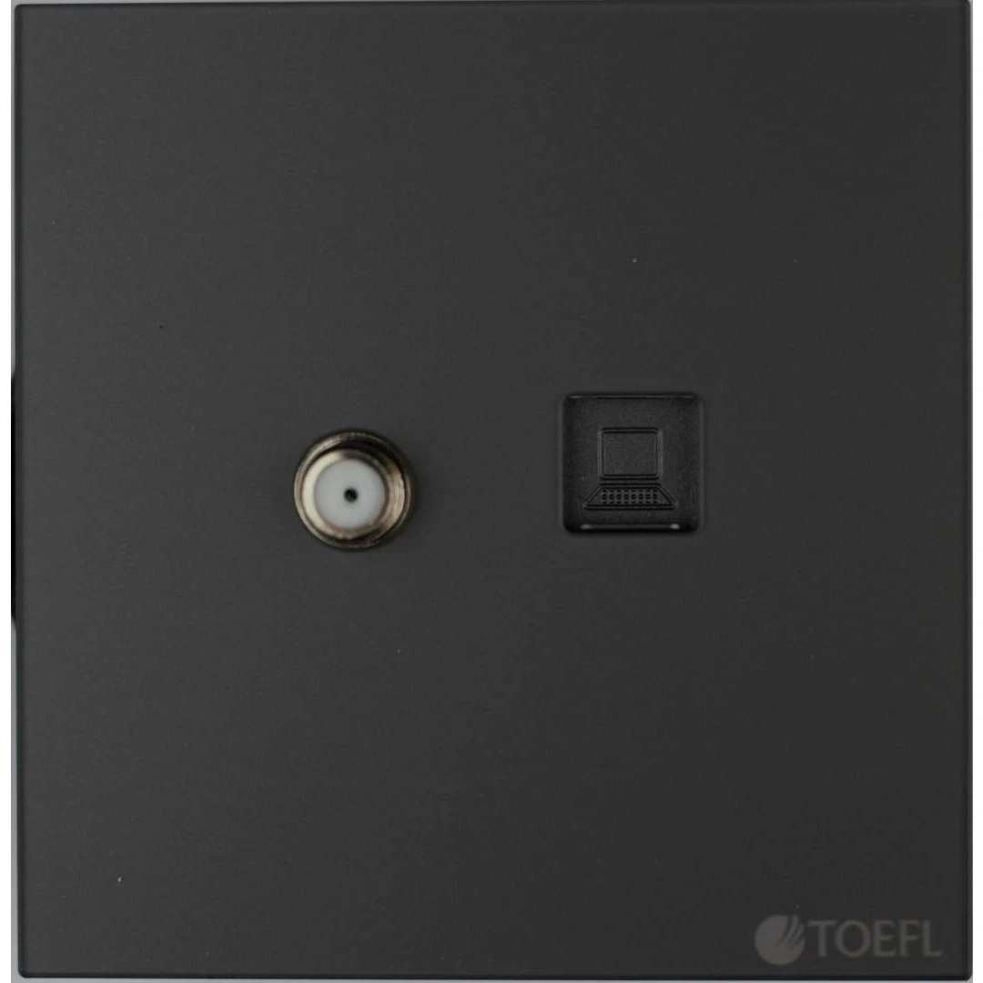 فيش عملي يجمع منفذين مهمين في وحدة واحدة: منفذ لشبكة الكمبيوتر/الاتصال ومنفذ لدش القمر الصناعي، مصمَّم لتوفير المساحة وترتيب الكابلات في المنازل والفنادق والأماكن المكتبية. لونه بلمسة بيانو أسود رويال أنيقة تتناسب مع الديكور العصري.