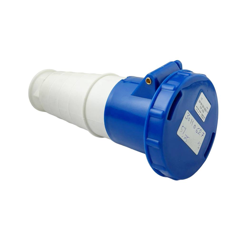 • فيش صناعي أنثى علاقي ثلاثي الفاز (3 فاز) بسعة 63 أمبير وفولتية 250 فولت.