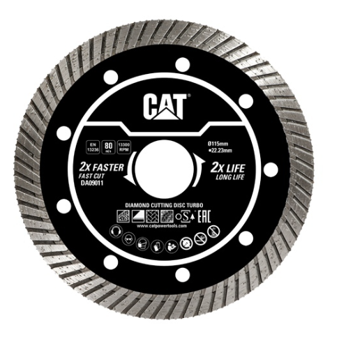 قرص القطع التوربيني الماسي موديل DA09011 من CAT مقاس 4.5 بوصة مصمّم لتوفير أداء عالي ودقة في عمليات القطع الشاقة. يوفّر التصميم التوربيني الماسي قدرة على قطع سريع وسلس مع تحكم أفضل وتقليل الانسداد، مما يجعله خياراً مناسباً للأعمال الإنشائية والخرسانية المتطلبة.