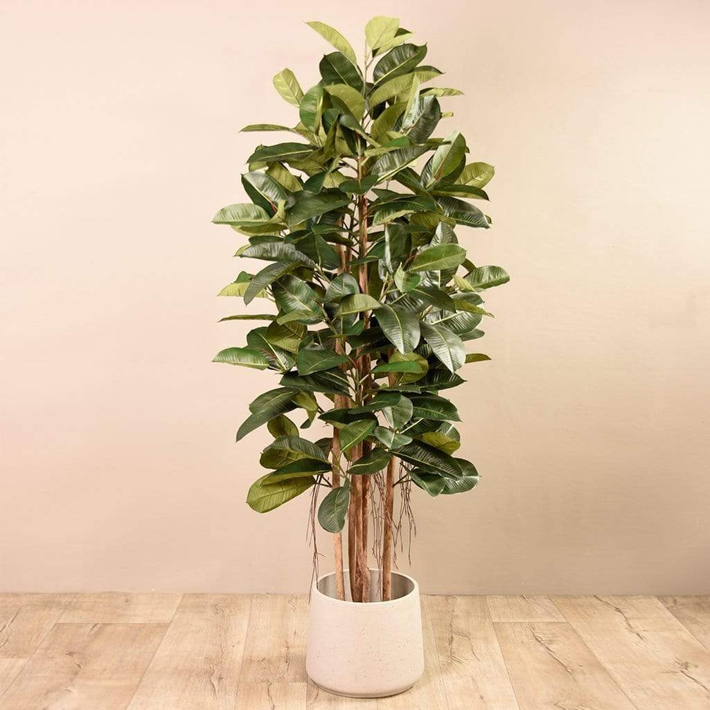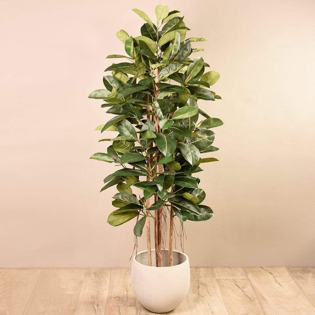 شجرة مثالية للمساحات الداخلية بتصميم واقعي يجمع بين أوراق عريضة ووافرة وجذع بني يشبه المظهر الطبيعي تمامًا. لا حاجة للري أو التقليم—تصل الشجرة مجمعة وجاهزة لتزيين منزلك، كل ما عليك هو وضعها داخل الأصيص الذي تختاره.
