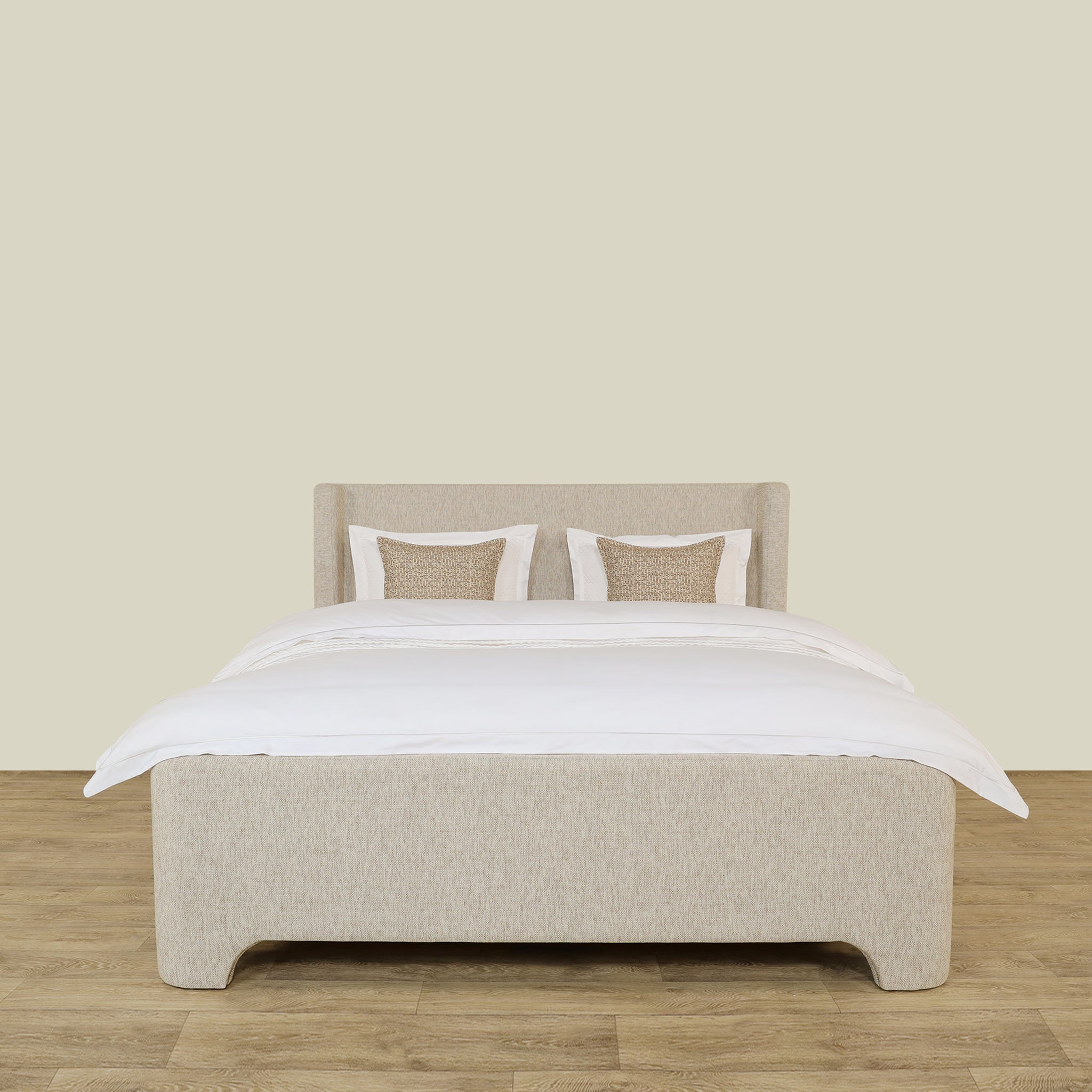 سرير أنيق يجمع بين المتانة والراحة، مصمّم بإطار خشبي قوي وتنجيد بقماش ناعم ليمنح غرفة النوم مظهراً راقياً وخالداً. لونه المحايد وبنائه المتقن يجعلان منه قطعة مركزية متطورة تضيف الأناقة والمتانة إلى أي مساحة نوم.