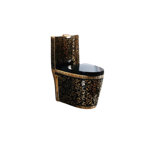 كرسي حمام أفرنجي أرضي بتصميم مودرن – أسود لامع بنقشة ذهبية