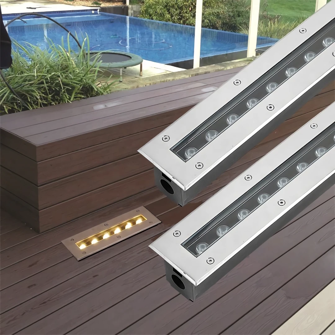 كشاف أرضي دفن — لون الإضاءة: أصفر دافئ (مسطرة 6 عيون) — مقاس تقريبي 30 × 7 سم