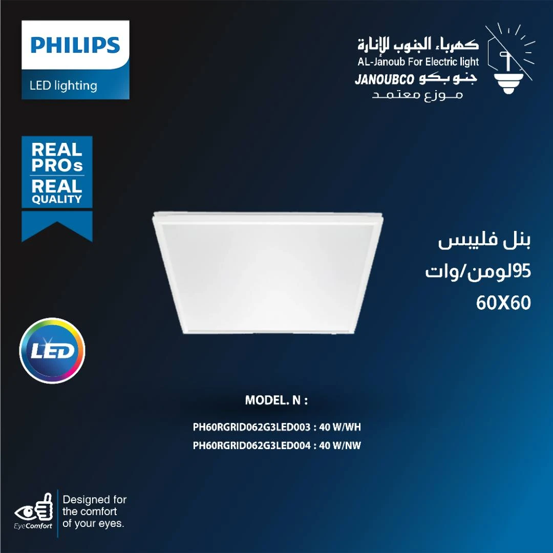 كشاف سقف مستعار بنل فيليبس — 40 واط، لون إضاءة أبيض، 95 لومن/وات، مقاس 60×60 سم