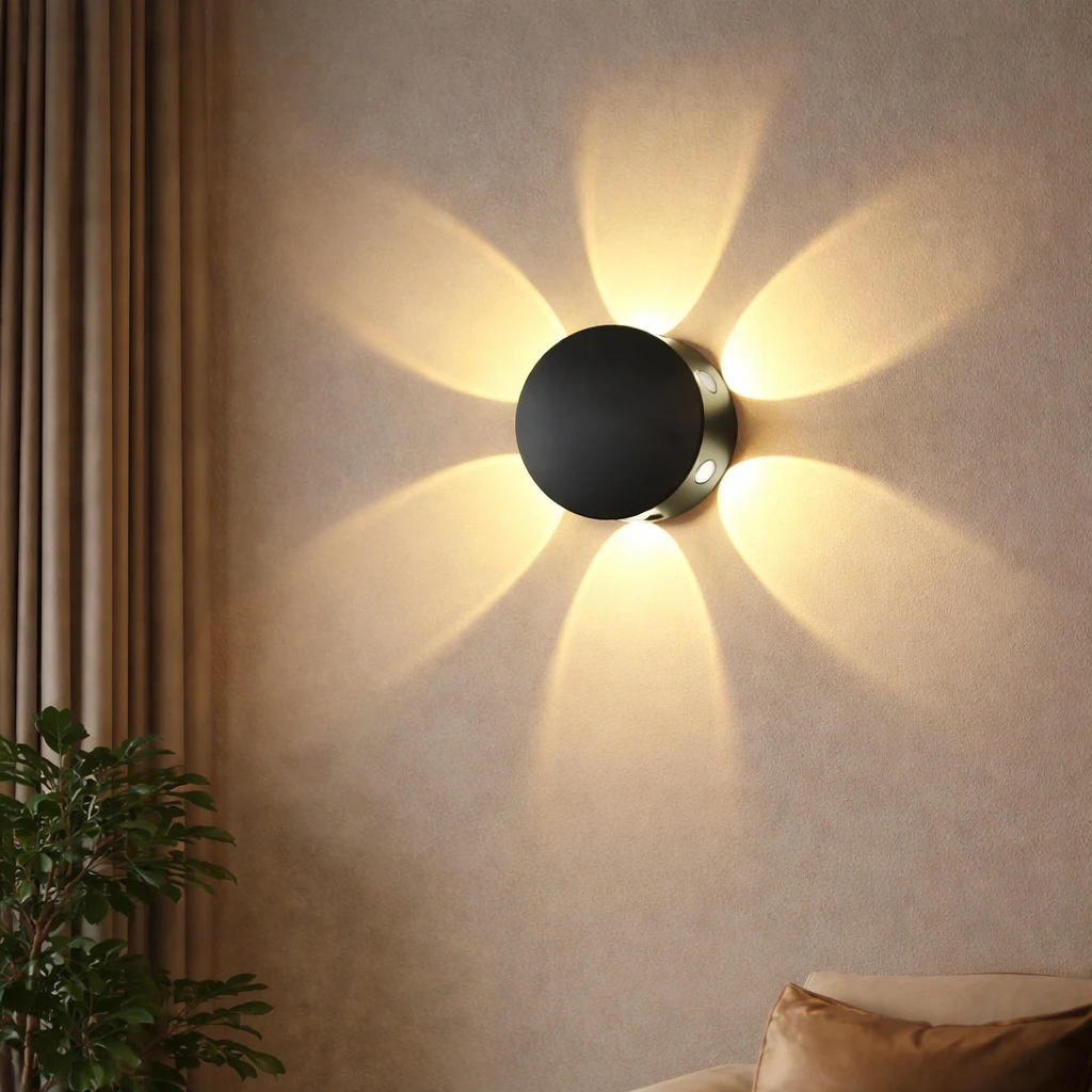 كشاف خارجي بقدرة 6 واط يمنح بوابة المنزل والواجهة مظهرًا عصريًا ودافئًا. إضاءة صفراء مريحة للعين تبرز التفاصيل الخارجية وتخلق جوًا أنيقًا وآمنًا حول مدخل المنزل.