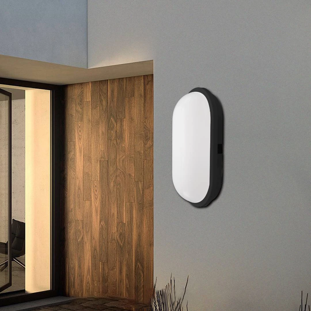 إنارة الحائط الخارجية هذه تمنح المساحات الخارجية مظهرًا متكاملًا وإضاءة عملية ومريحة للعين. تصميم بيضاوي أنيق ومتين مناسب للحدائق، الممرات، الواجهات، والمداخل.