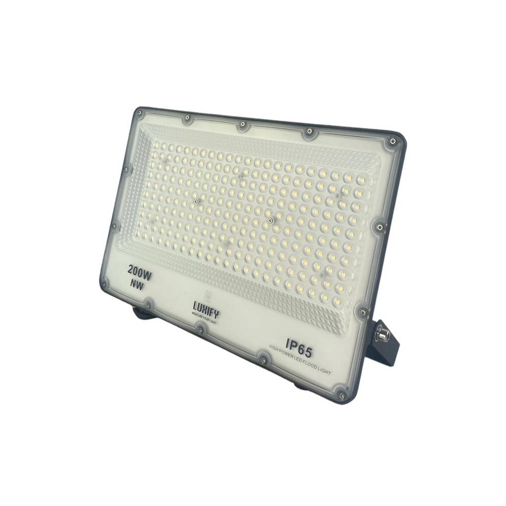 كشاف خارجي من ماركة LUXIFY بقوة 200 واط ودرجة حرارة لونية كريمية دافئة 4000 كلفن، مصمم لإضاءة المساحات الخارجية بكفاءة ومتانة مع حد أقل من الحاجة للصيانة.
