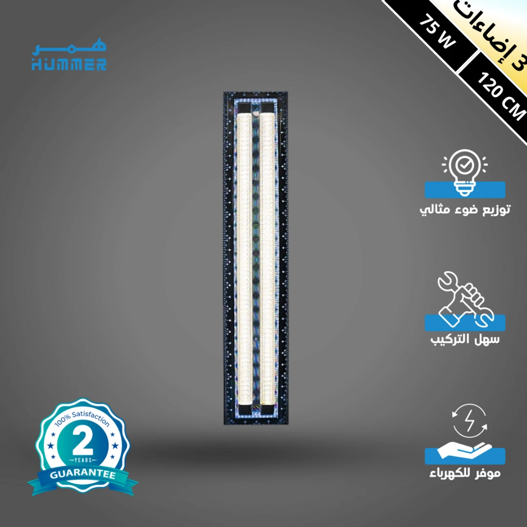 لمبة إضاءة زخرفية تضفي طابعًا جماليًا ودافئًا على المنزل. تأتي بإطار معدني مزخرف من النيكل الفضي وطول 120 سم مع ثلاث مصادر إضاءة وإطار خارجي مضيء باللون الأزرق بقدرة إجمالية 75 واط. ينشر الغطاء البلاستيكي الملون ضوءًا ناعمًا يخلق جوًا مريحًا في الغرفة، ومصمم للاستخدام الآمن وسهل التركيب.