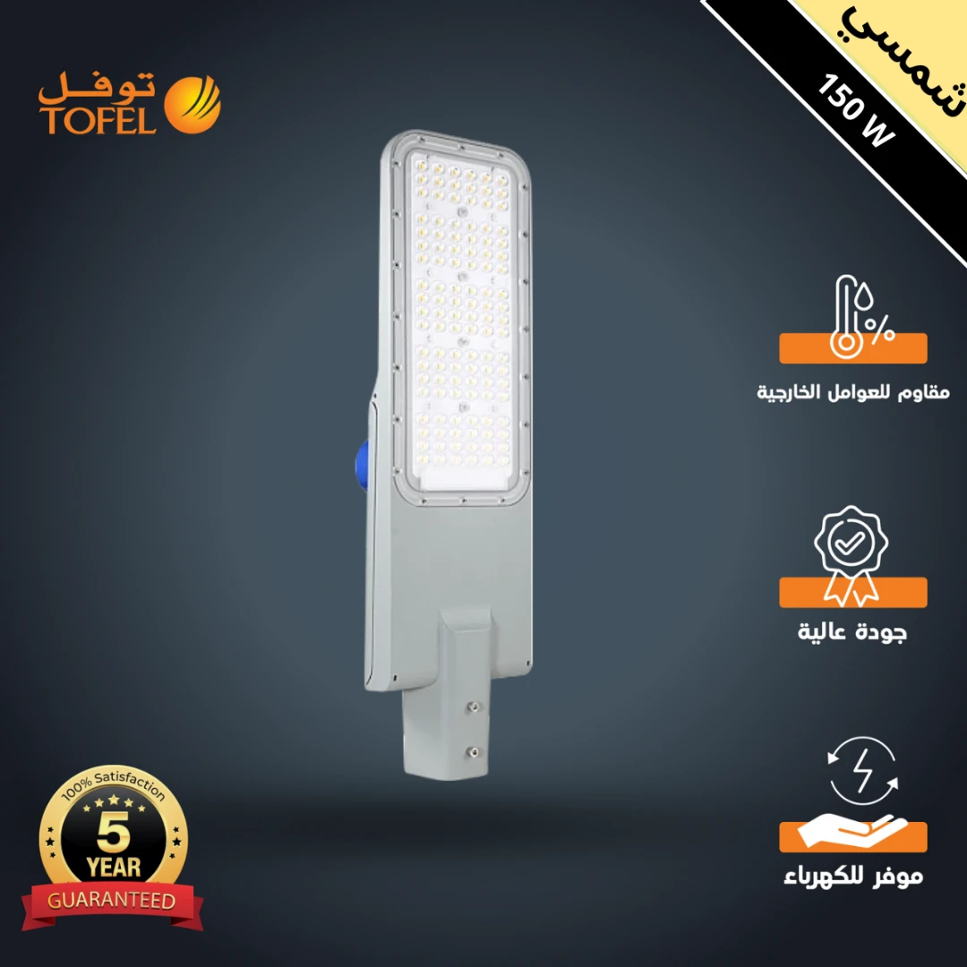 كشاف شارع خارجي 150 واط بلون إنارة شمسي كريمي مع محول داخلي من فلبيس وحساس ضوء — ماركة توفل بضمان 5 سنواتكشاف شارع خارجي 150 واط بلون إنارة شمسي كريمي مع محول داخلي من فلبيس وحساس ضوء — ماركة توفل بضمان 5 سنوات
