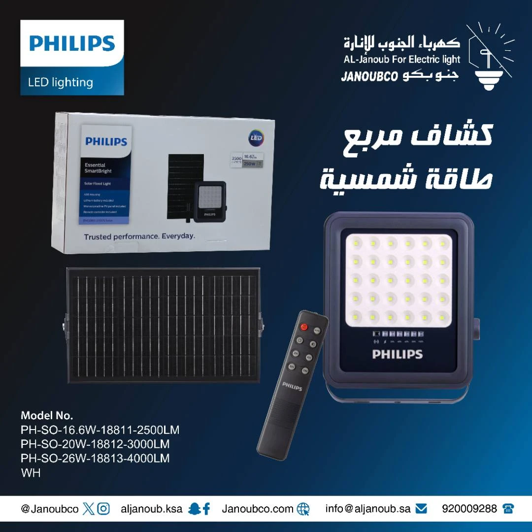 كشاف طاقة شمسية مربع 30 واط — PHILIPS (فيليبس) — ضمان سنتين