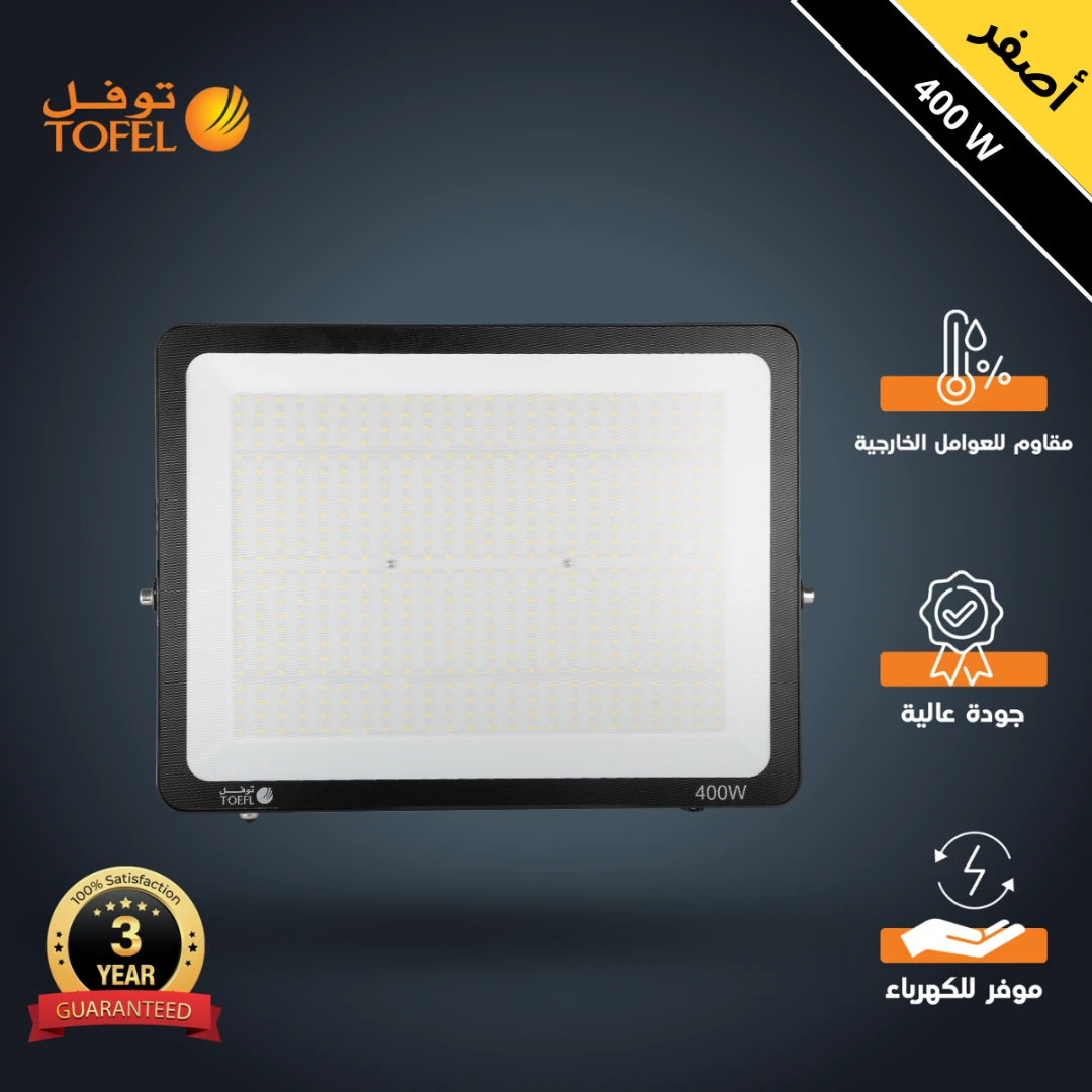 كشاف فلود لايت خارجي 400 واط — إضاءة صفراء (توفل)