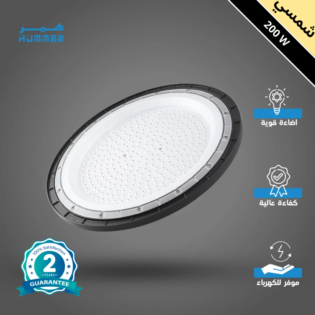 كشاف طاقة عالية بقدرة 200 واط مصمم خصيصًا لإضاءة المساحات الكبيرة مثل هناجر الطائرات والمستودعات والمصانع. يوفر لون إنارة شمسي كريمي مناسبًا للبيئات الصناعية والتجارية حيث يتطلب توزيع ضوء واسع وواضح لإتمام الأعمال بأمان وكفاءة.