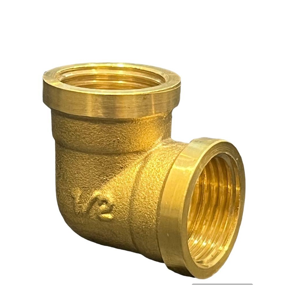 كوع نحاسي عادي قالب للصناعة الصينية بمقاس 1/2 بوصة، مزوّد بخيط داخلي على الطرفين (أنثى–أنثى)، مناسب لتوصيل أنابيب المياه والأنظمة الصحية.