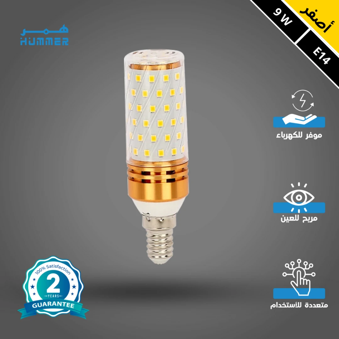 لمبة لون الإضاءة أصفر 9 واط — أسطوانية (قاعدة E14)