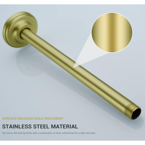 تجمع ماسورة الدش من أوريسا بين التصميم الأنيق والوظيفة العملية: مظهر ذهبي راقٍ، توزيع ماء واسع لتجربة استحمام فاخرة، ومتانة تضمن أداءً طويل الأمد — خيار مثالي للحمامات الحديثة والفندقية على حد سواء.