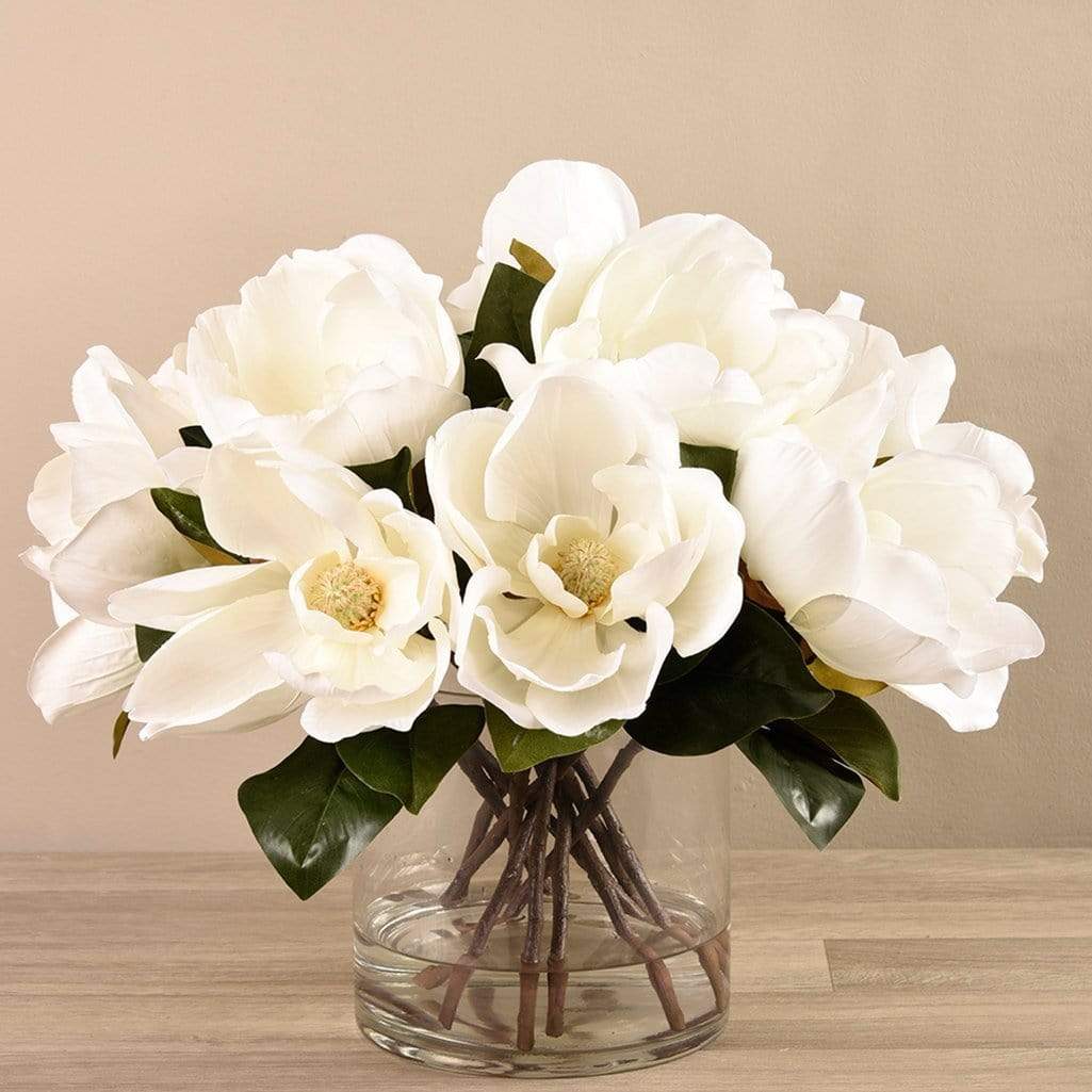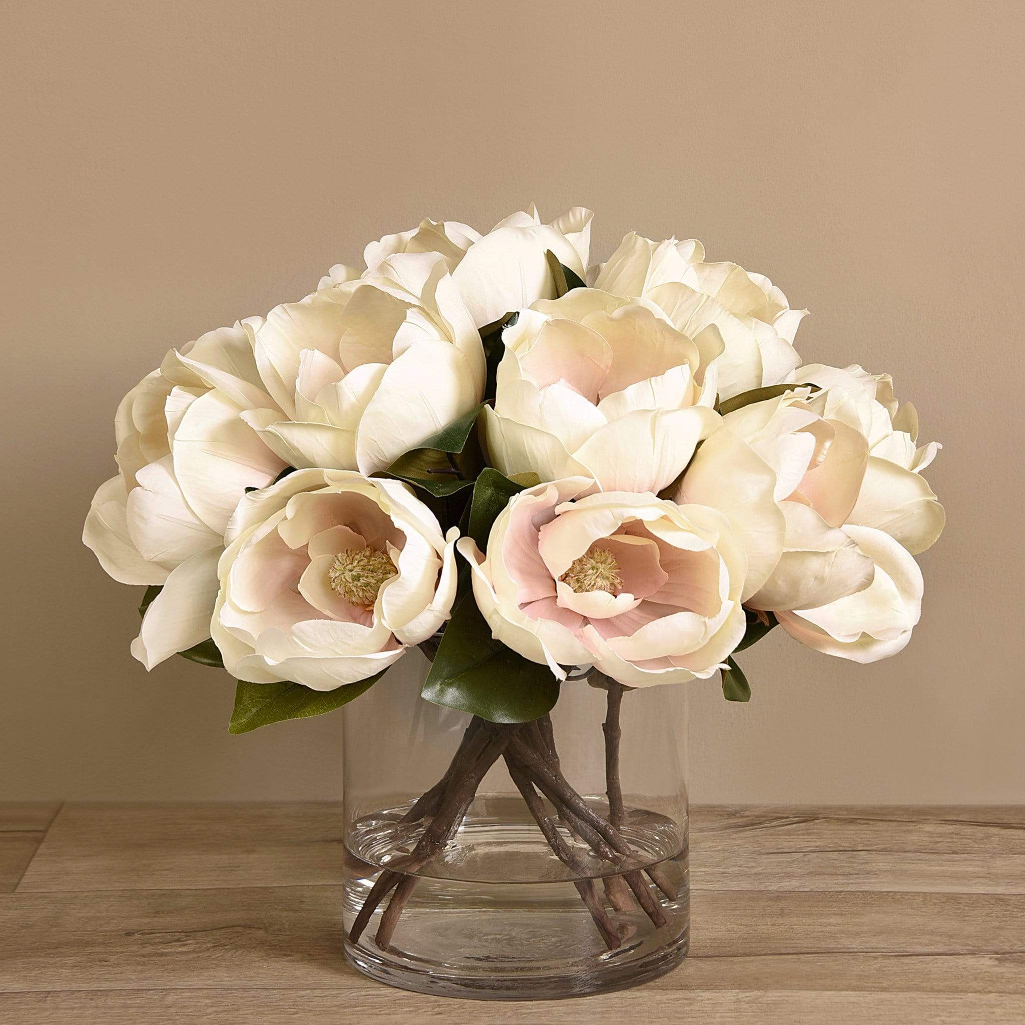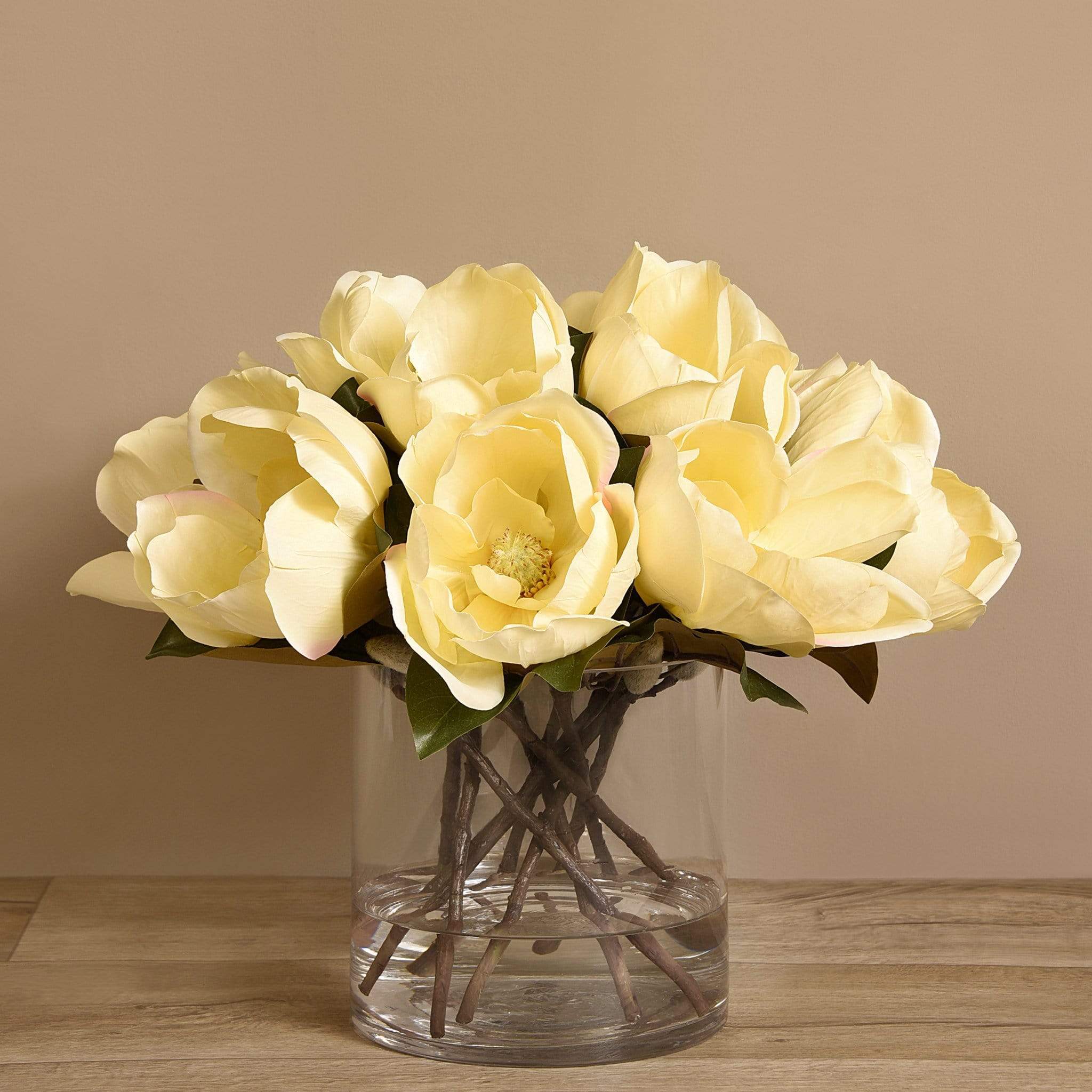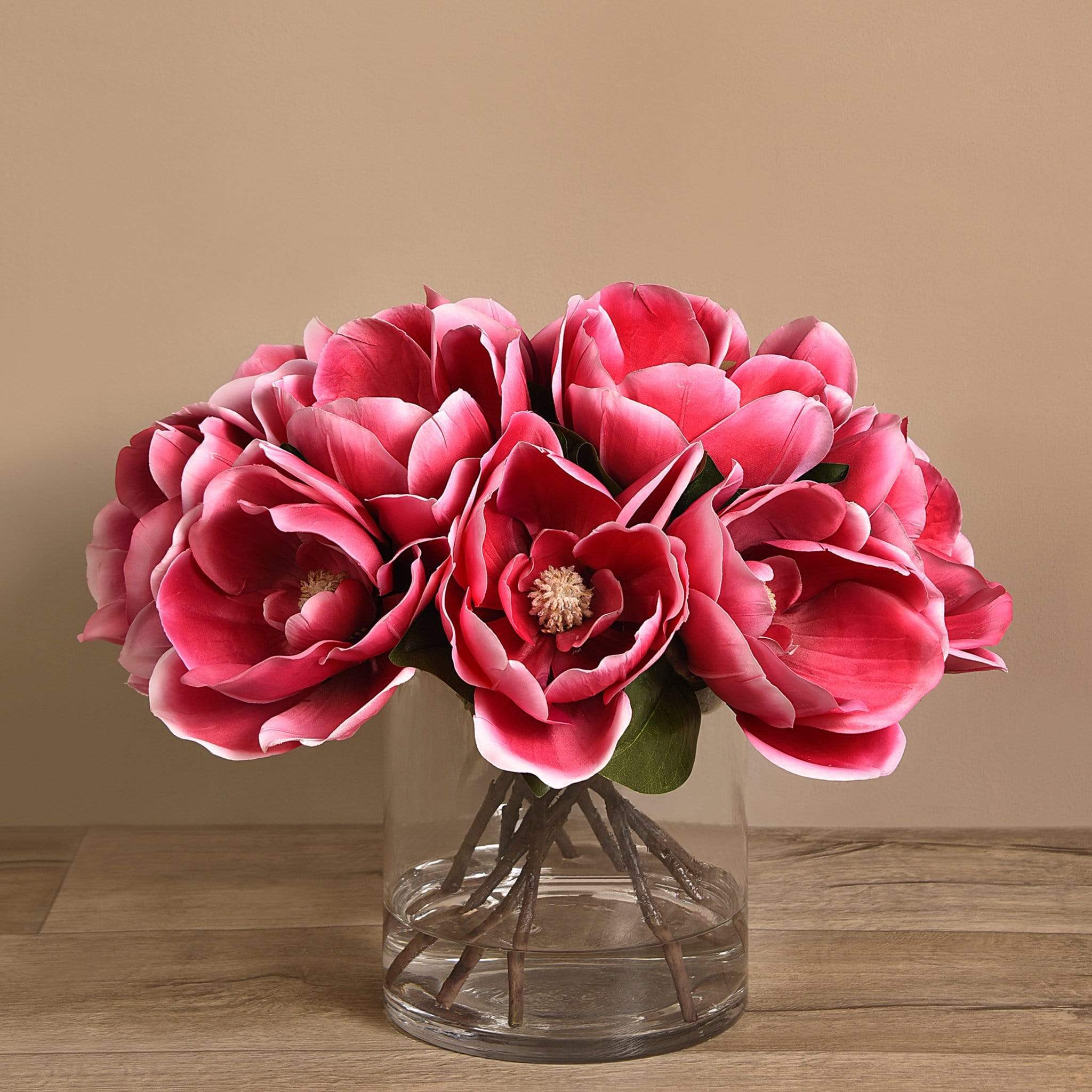 باقة ماغنوليا صناعية في مزهرية زجاجية