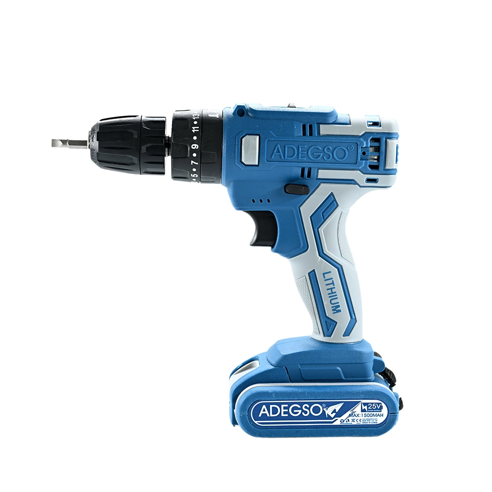 مثقاب لاسلكي ADEGSO بجهد 25 فولت مزود ببطاريتين ليثيوم سعة 1500 مللي أمبير/ساعة لكل منهما