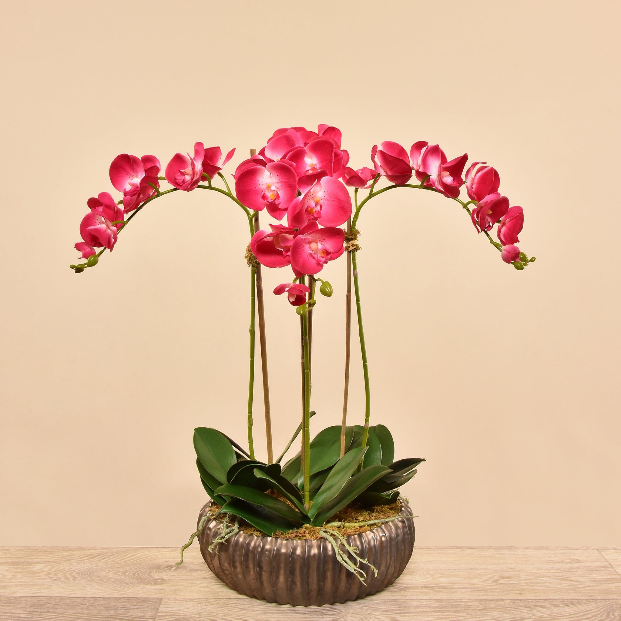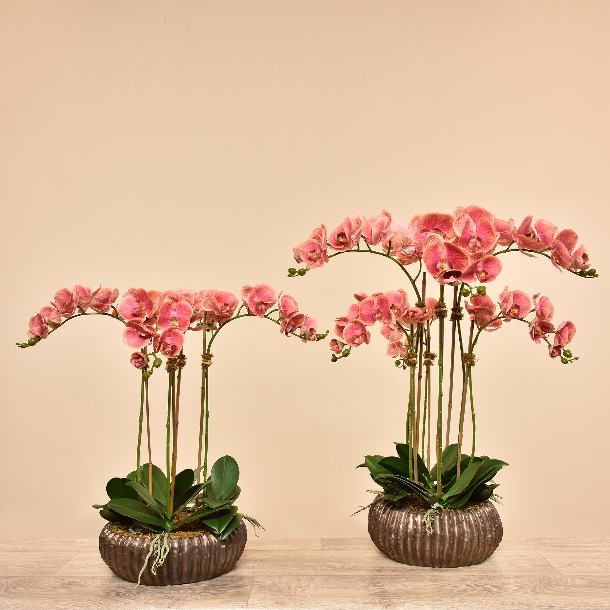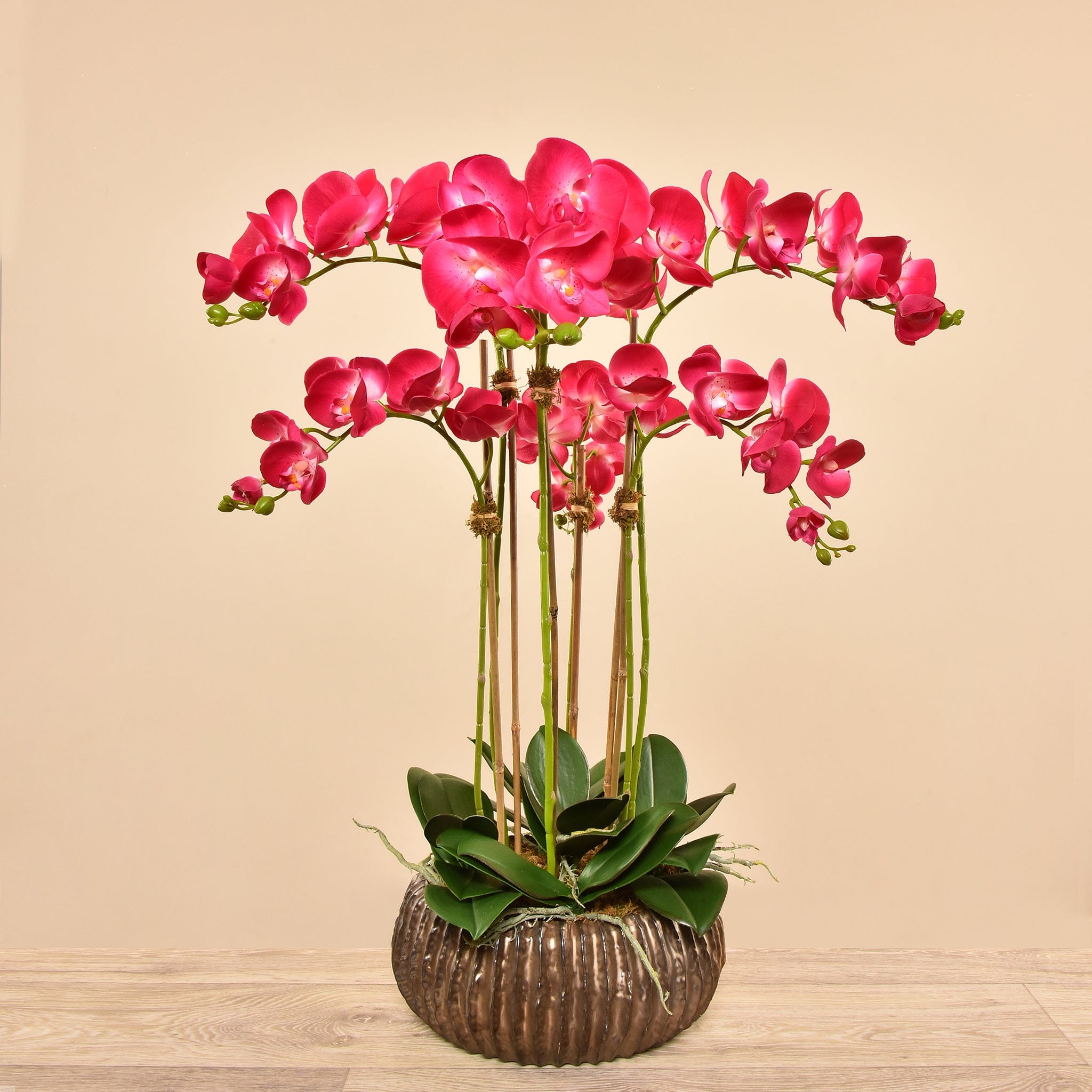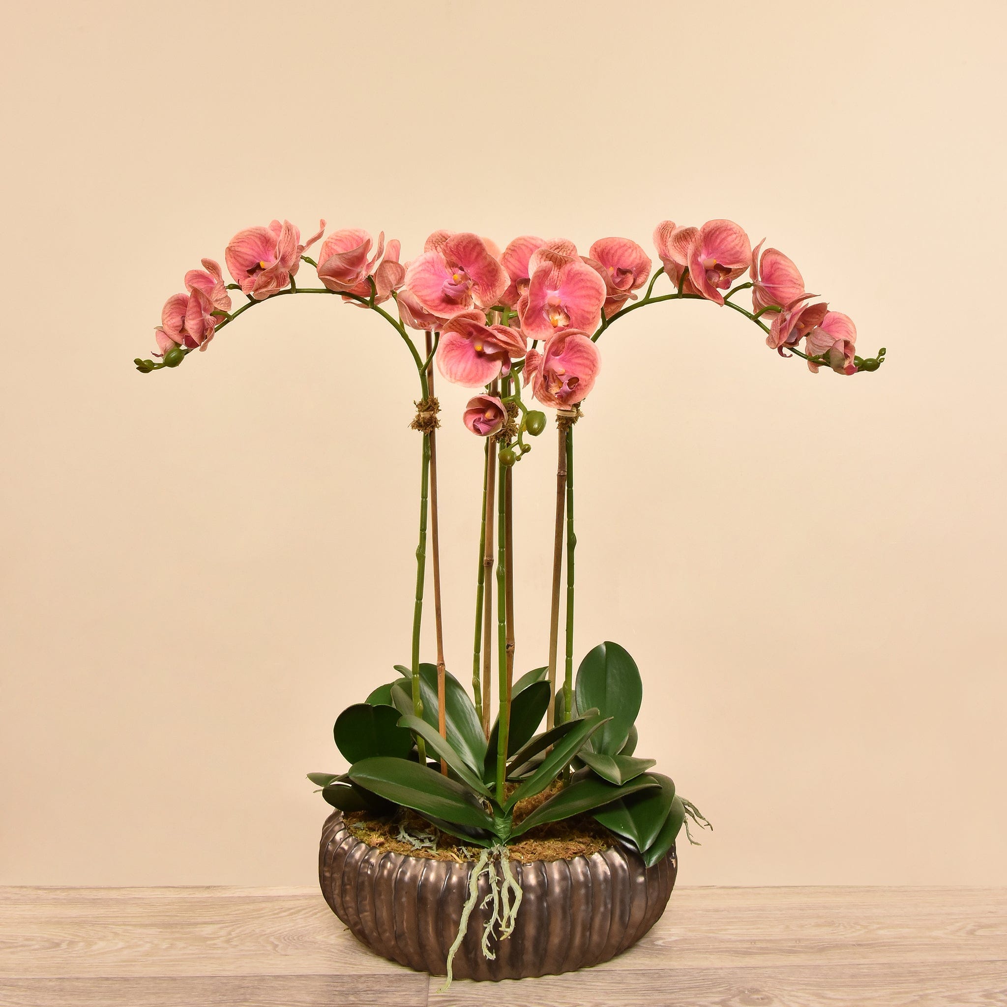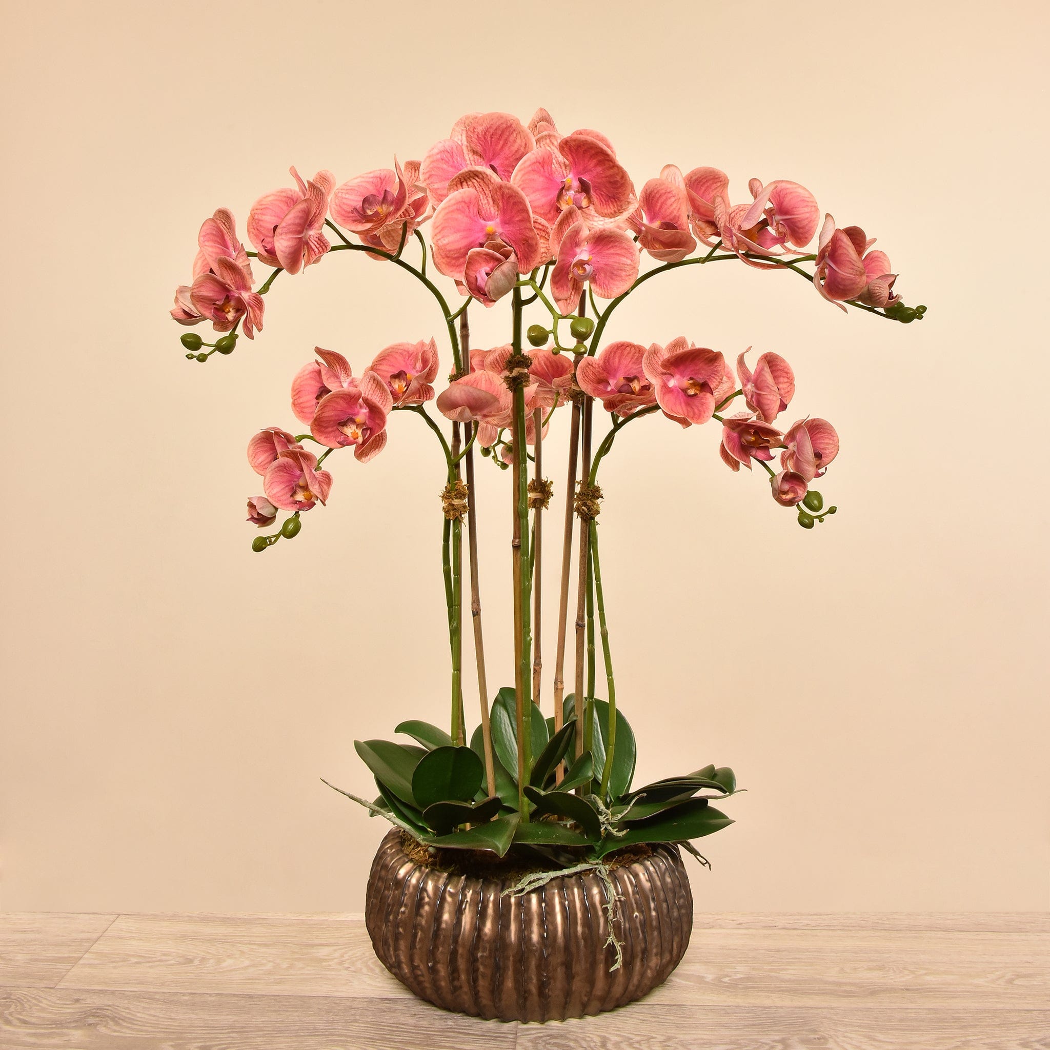 تشكيلة أوركيد صناعية مُصمَّمة يدويًا بمظهرٍ طبيعيٍ للغاية، تجمع بين الأناقة والواقعية دون عناء العناية.
