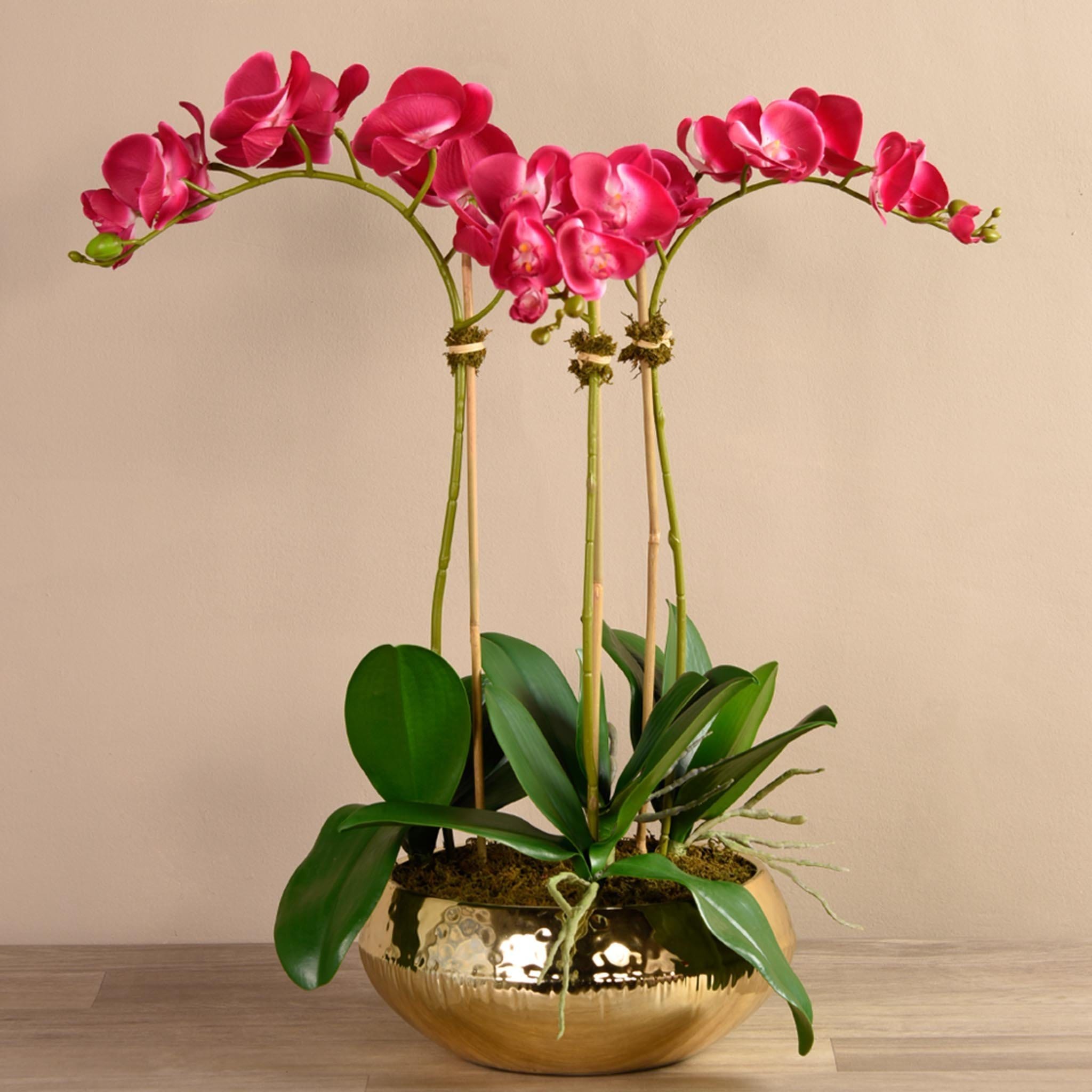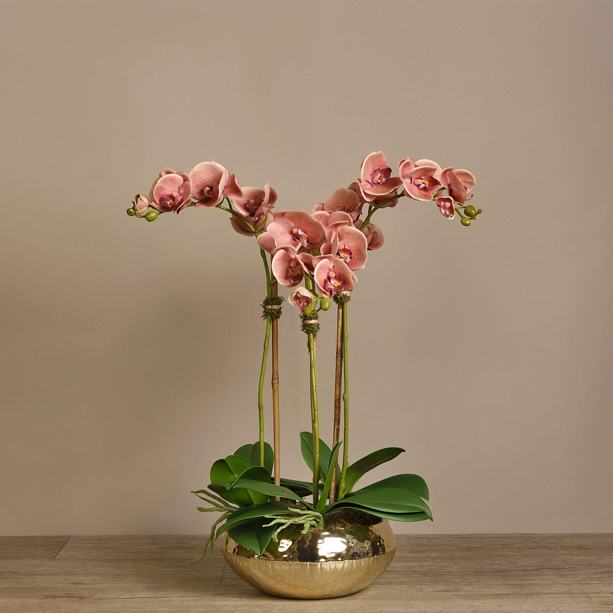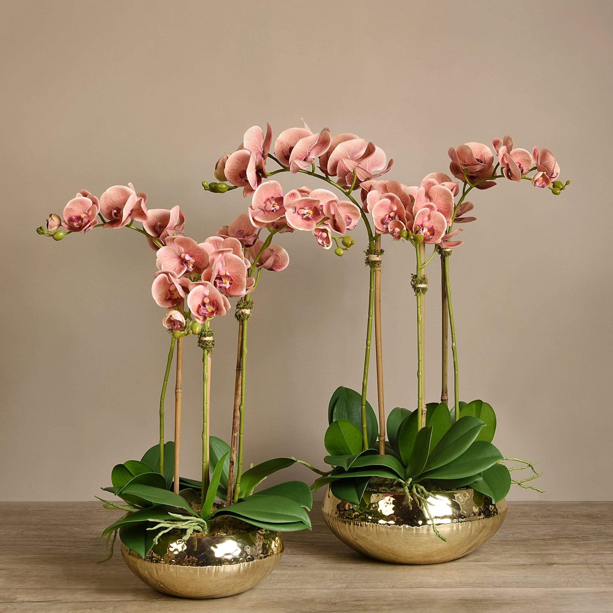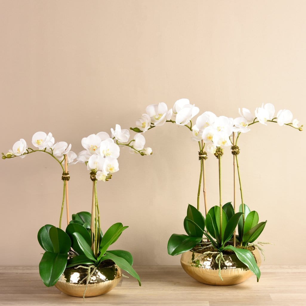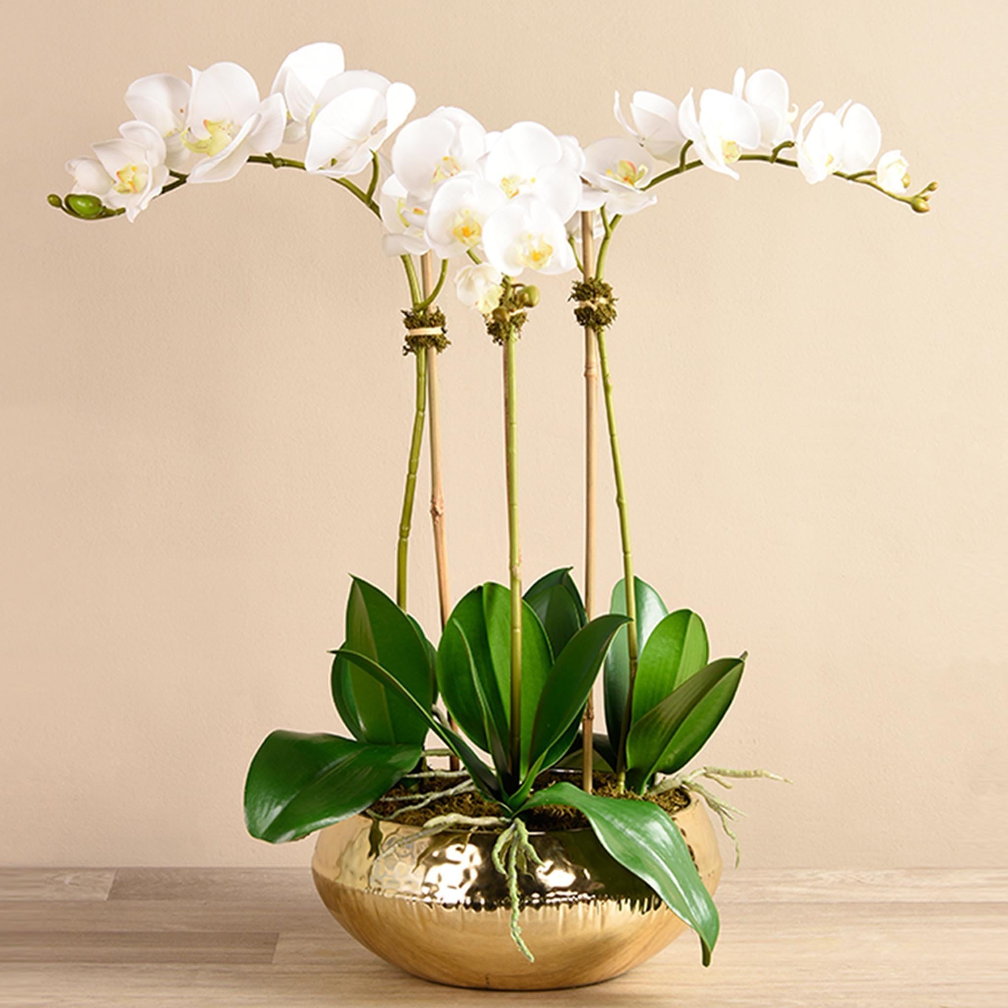 تشكيلة زهور الأوركيد الصناعية الفاخرة من بلومر تمنح مساحتك أناقة راقية ولمسة ذهبية تحاكي الذوق الرفيع. كل زهرة مصنوعة بعناية على أيدي منسقينا المتخصصين من خامات عالية الجودة لتبدو واقعية إلى حد يصعب معه التفريق بينها وبين الحقيقية.