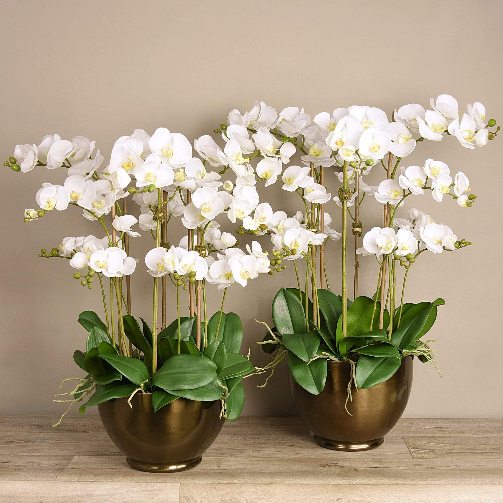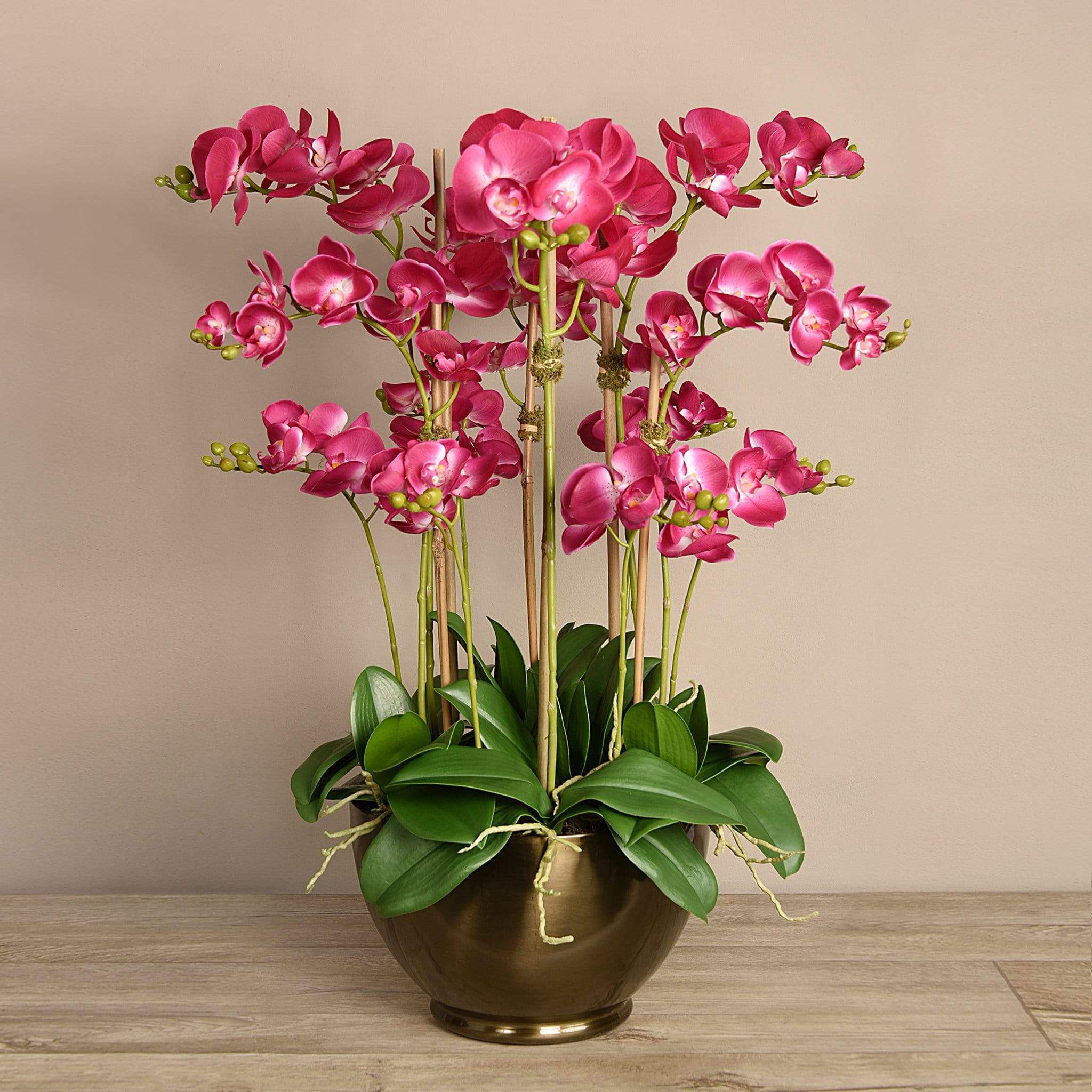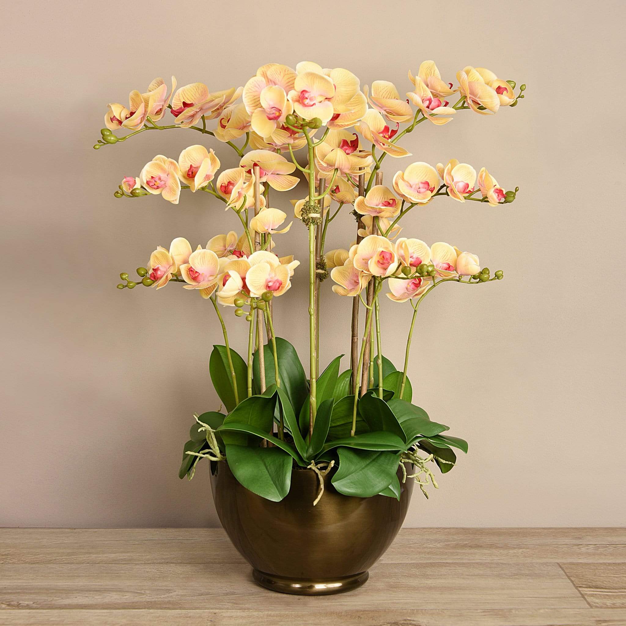 يقولون إن «الأقل هو الأكثر»… لكن أحيانًا، يكون المزيد هو الأكثر تأثيرًا. هذه التركيبة الكبيرة من أوركيد نابض بالحياة تصنع انطباعًا فوريًا. مصنوعة يدويًا بتقنية اللمس الحقيقي، فتبدو كل زهرة اصطناعية واقعية بشكل مذهل من البتلات حتى الجذور. الإناء بلون ذهبي غامق يضفي لمسة أنيقة وفاخرة على التصميم.