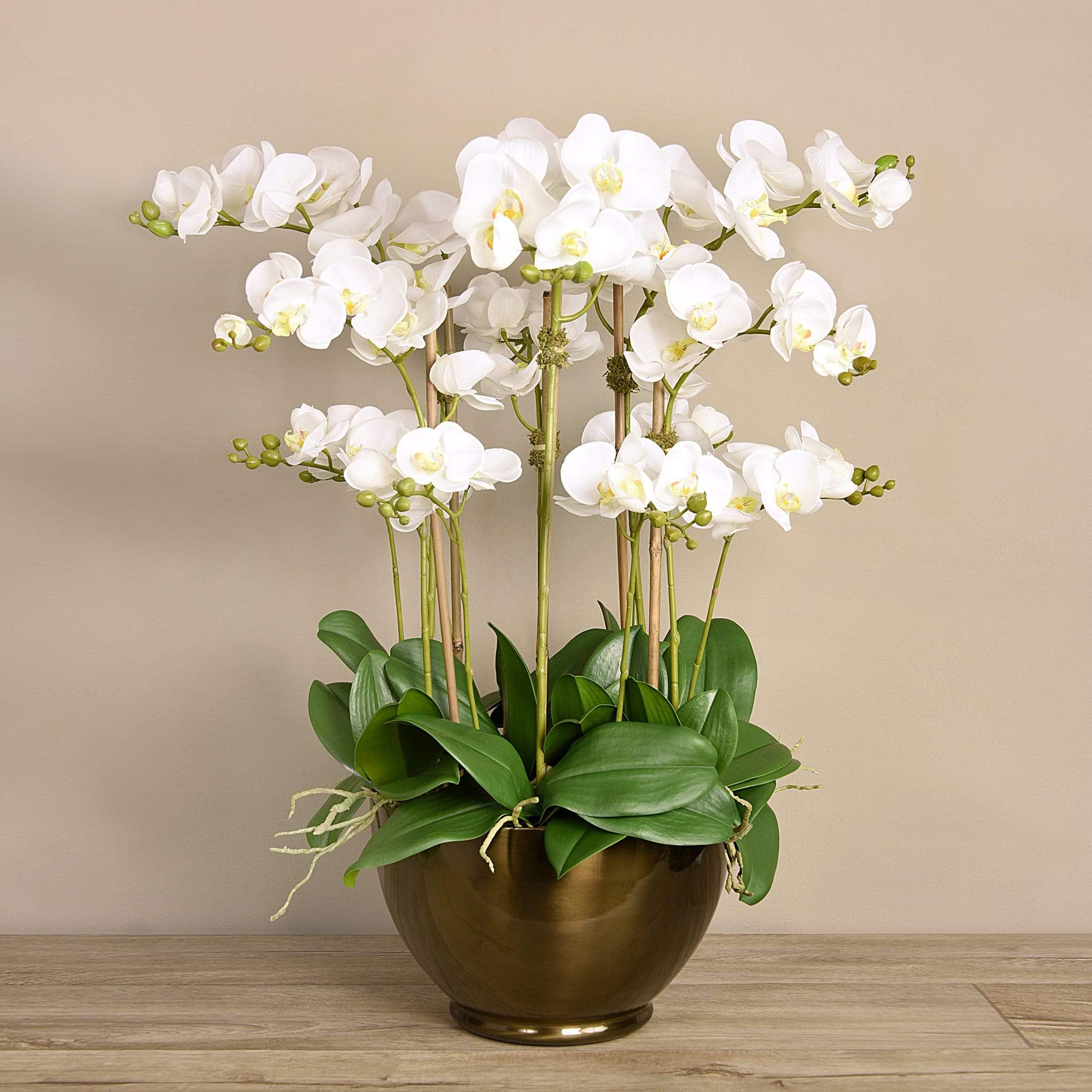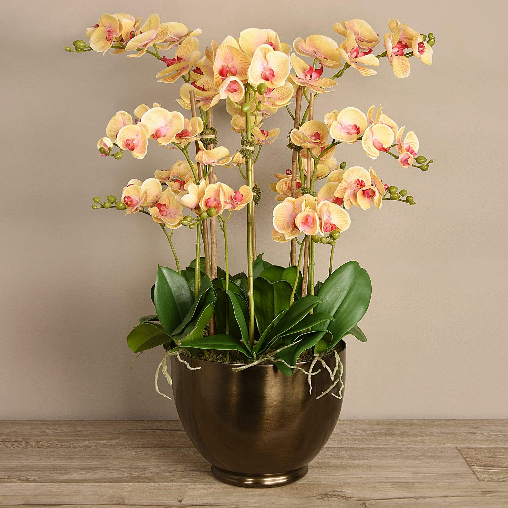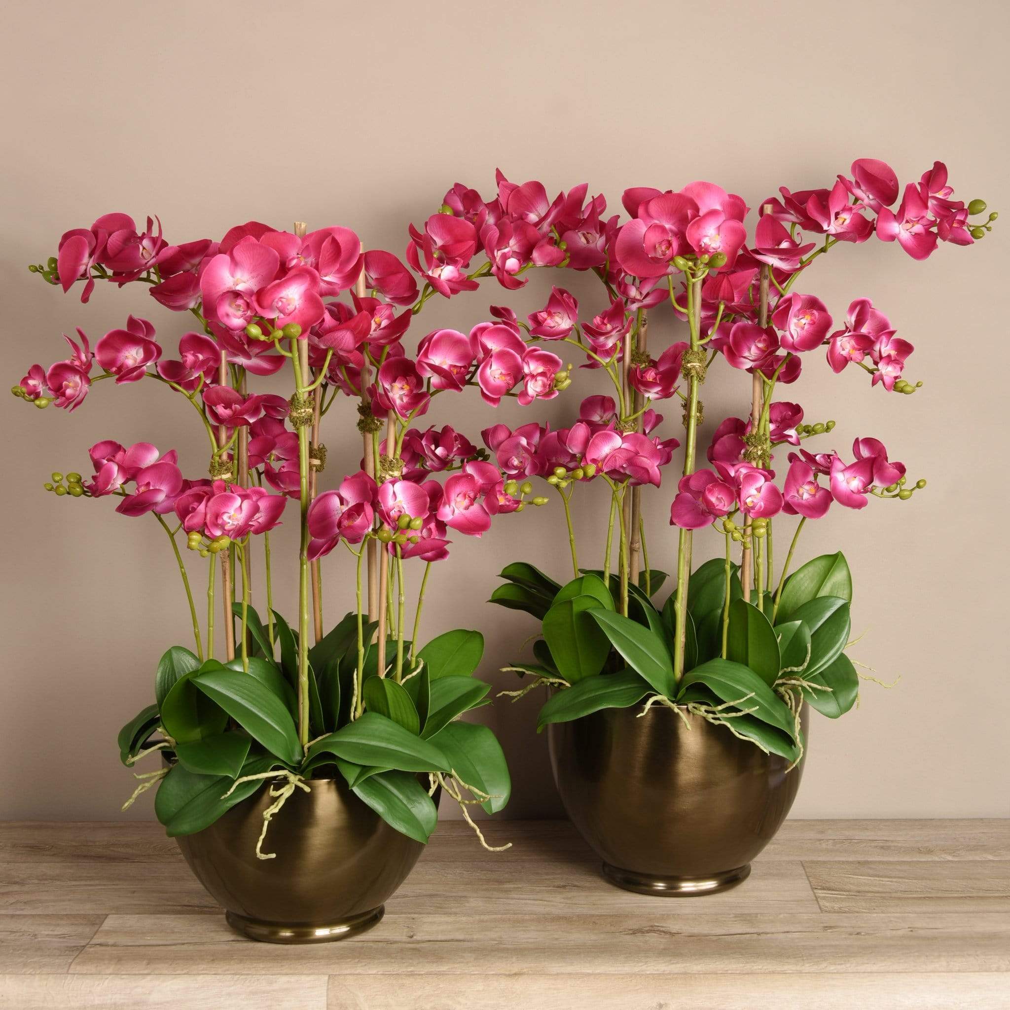 يقولون إن «الأقل هو الأكثر»… لكن أحيانًا، يكون المزيد هو الأكثر تأثيرًا. هذه التركيبة الكبيرة من أوركيد نابض بالحياة تصنع انطباعًا فوريًا. مصنوعة يدويًا بتقنية اللمس الحقيقي، فتبدو كل زهرة اصطناعية واقعية بشكل مذهل من البتلات حتى الجذور. الإناء بلون ذهبي غامق يضفي لمسة أنيقة وفاخرة على التصميم.