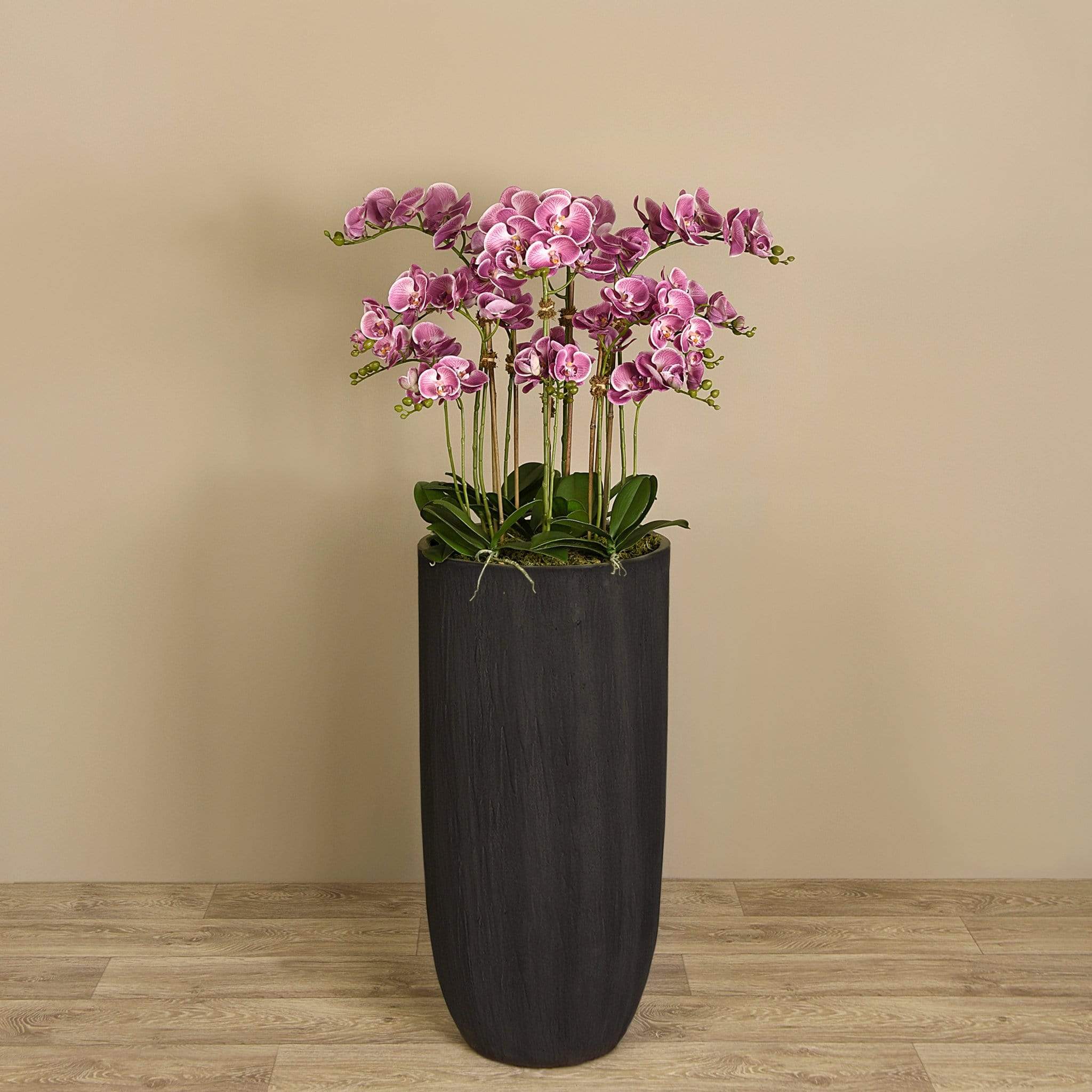 اسم المنتج: تشكيلة أوركيد عصرية.تصميم عصري لتزيين المساحات الداخلية.متوفرة بمقاسين: صغير وكبير.مقاسات الصغير: الارتفاع الكلي 140 سم (55.1″)، ارتفاع المزهرية 80 سم (31.5″)، القطر 40 سم (15.75″).مقاسات الكبير: الارتفاع الكلي 162 سم (63.8″)، ارتفاع المزهرية 100 سم (39.5″)، القطر 50 سم (19.75″).مناسبة للعرض كعنصر ديكور بارز في المنزل أو المكتب.