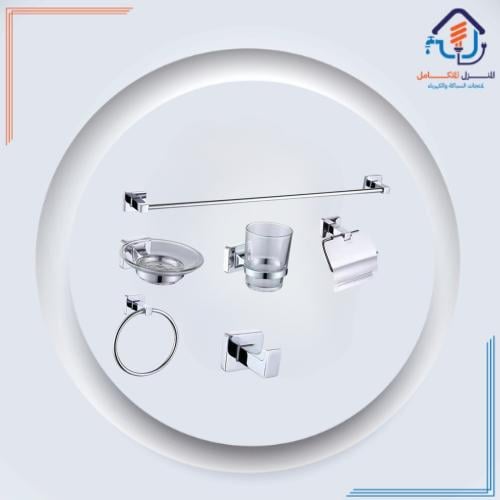 طقم اكسسوارات حمام 7 قطع – مقاوم للصدأ – كروم