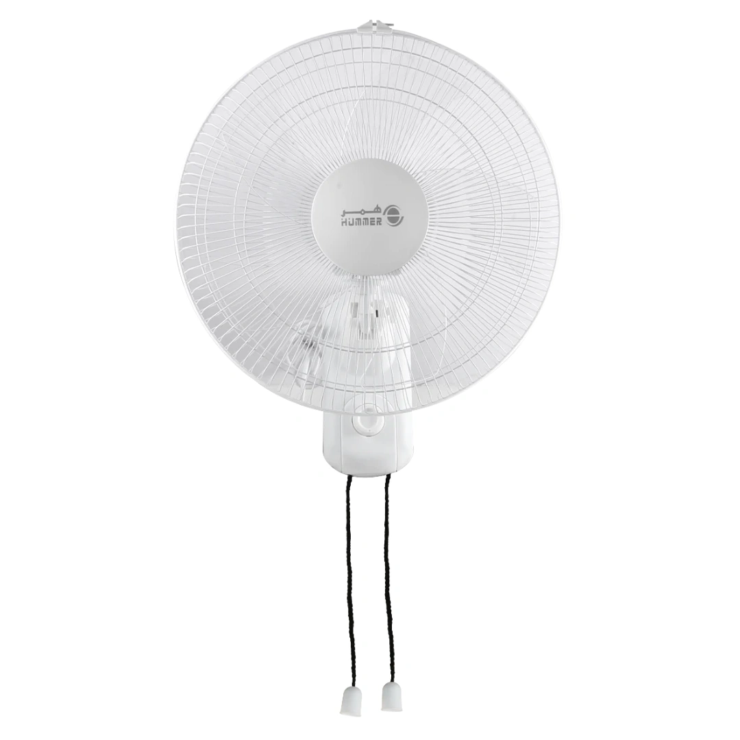 مروحة حائط عملية بأغطية بيضاء أنيقة ومقاس 16 بوصة، مصممة للتركيب على الجدران لتوفير تهوية فعالة في الغرف الصغيرة والمتوسطة.