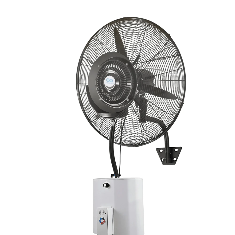 - تبريد بالرذاذ: تولِّد غيمة رذاذ دقيقة تعمل على خفض درجة الحرارة بشكل محسوس ومنعش.