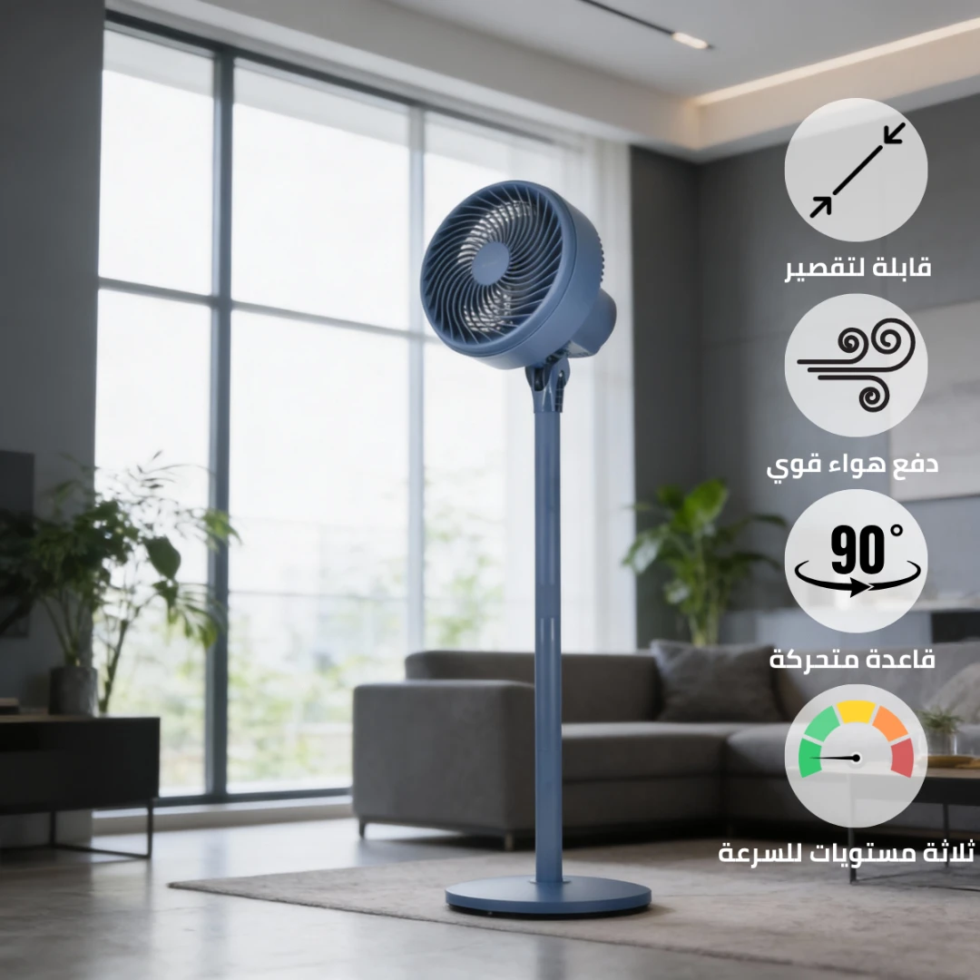 للحصول على تبريد قوي وتصميم معاصر مع ضمان موثوق، مروحة ستاند مودرن أزرق 75 واط خيار مثالي لمنزلٍ مريح ومظهر أنيق.