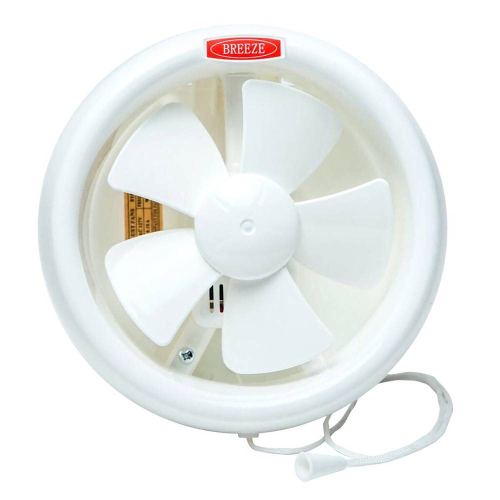 مروحة شفط دائري مصنوعة من البلاستيك من علامة BREEZE، مصممة للتهوية وإزالة الروائح والرطوبة في المساحات الصغيرة والمتوسطة.