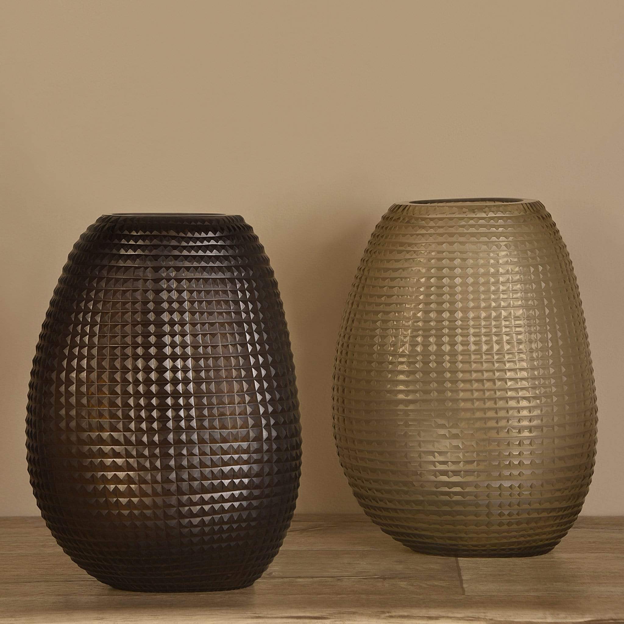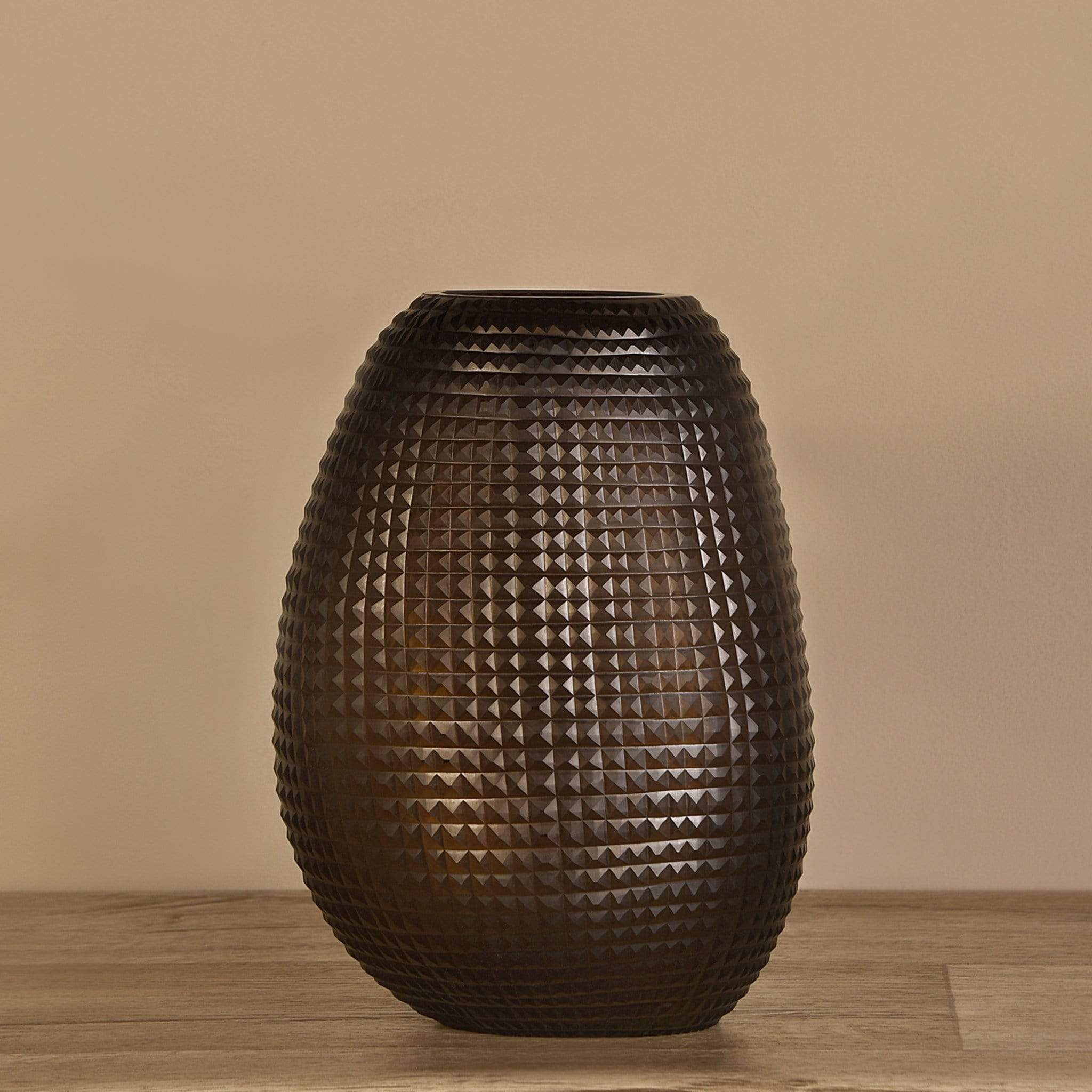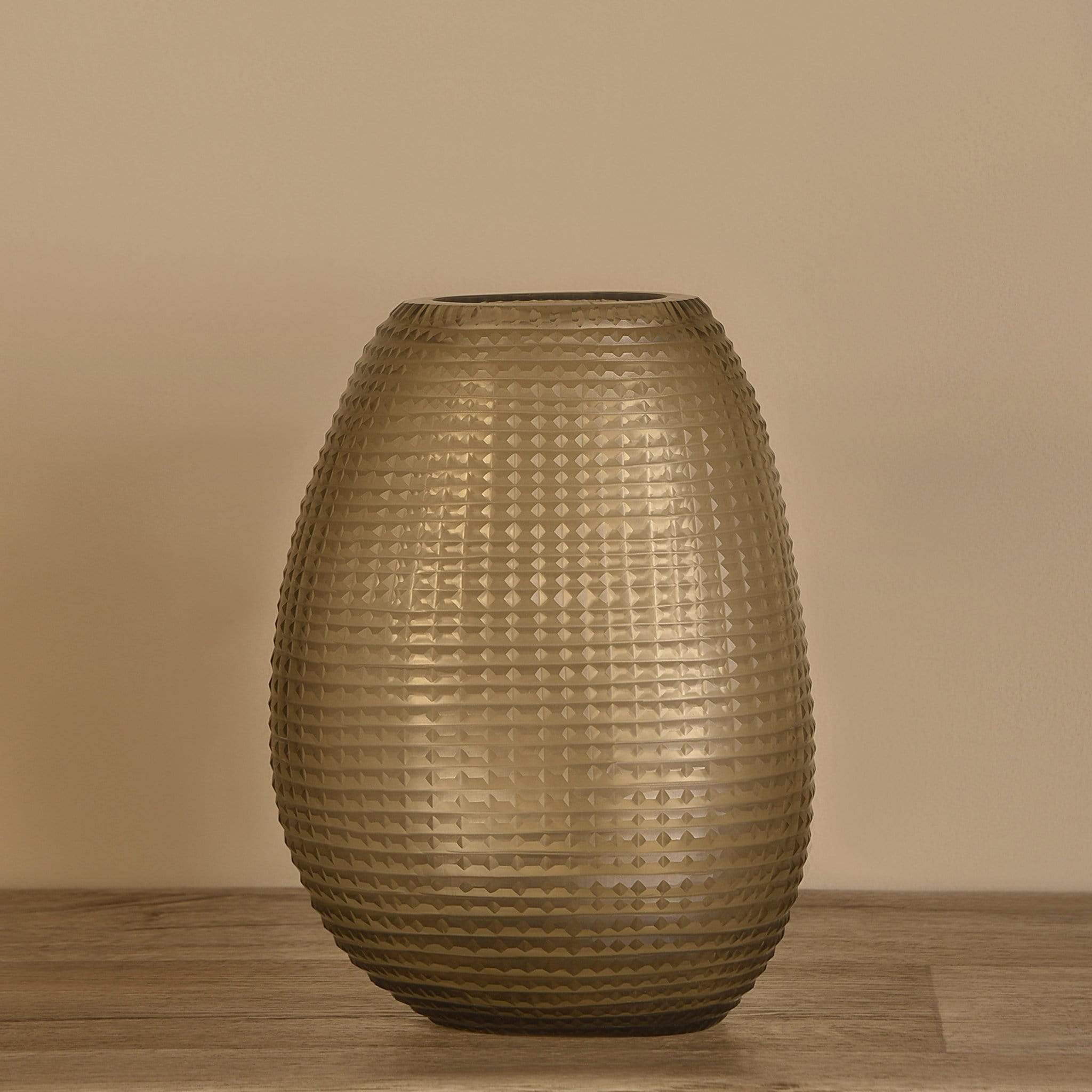 وصف المنتج:مزهرية أنيقة بتصميم حصوي مصنوعة من الزجاج، تضيف لمسة دافئة وعصرية إلى الديكور الداخلي.