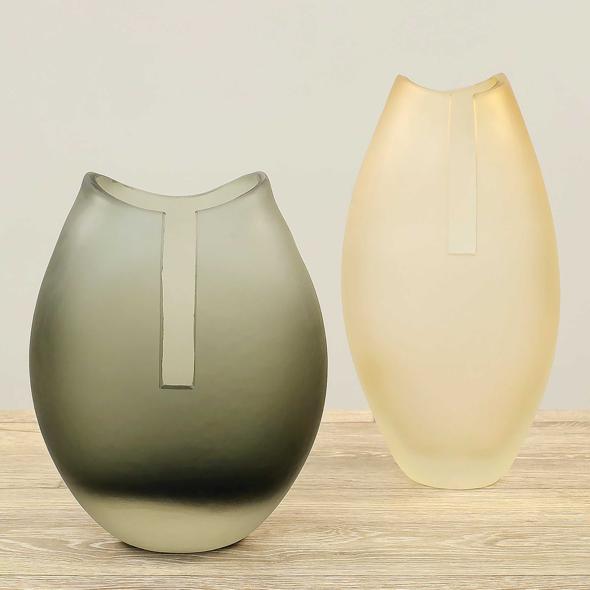 مزهرية زجاجية أنيقة تجمع بين لمسة عتيقة ومظهر معاصر، بلونين متناسقين: أبيض عتيق ورمادي داكن. تضيف لمسة جمالية هادئة وراقية لأي ركن في المنزل أو المكتب.