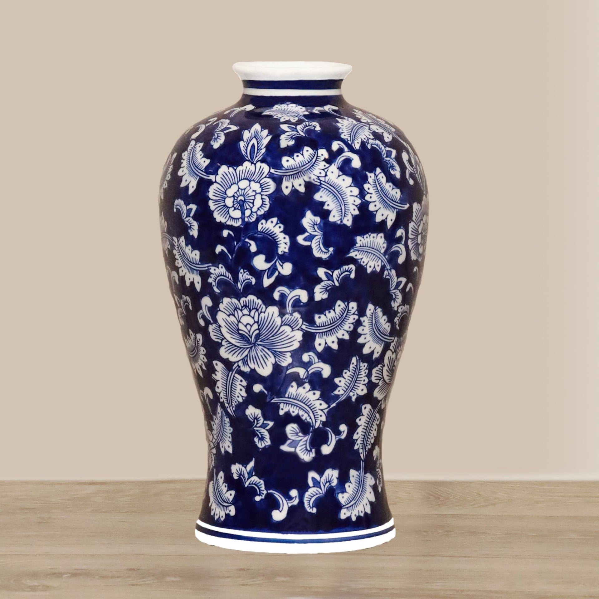 مزهرية خزفية أنيقة باللونين الأبيض والأزرق، تصميم بسيط وعصري يناسب تزيين المنزل أو المكتب ويُضفي لمسة من الأناقة على أي مساحة.