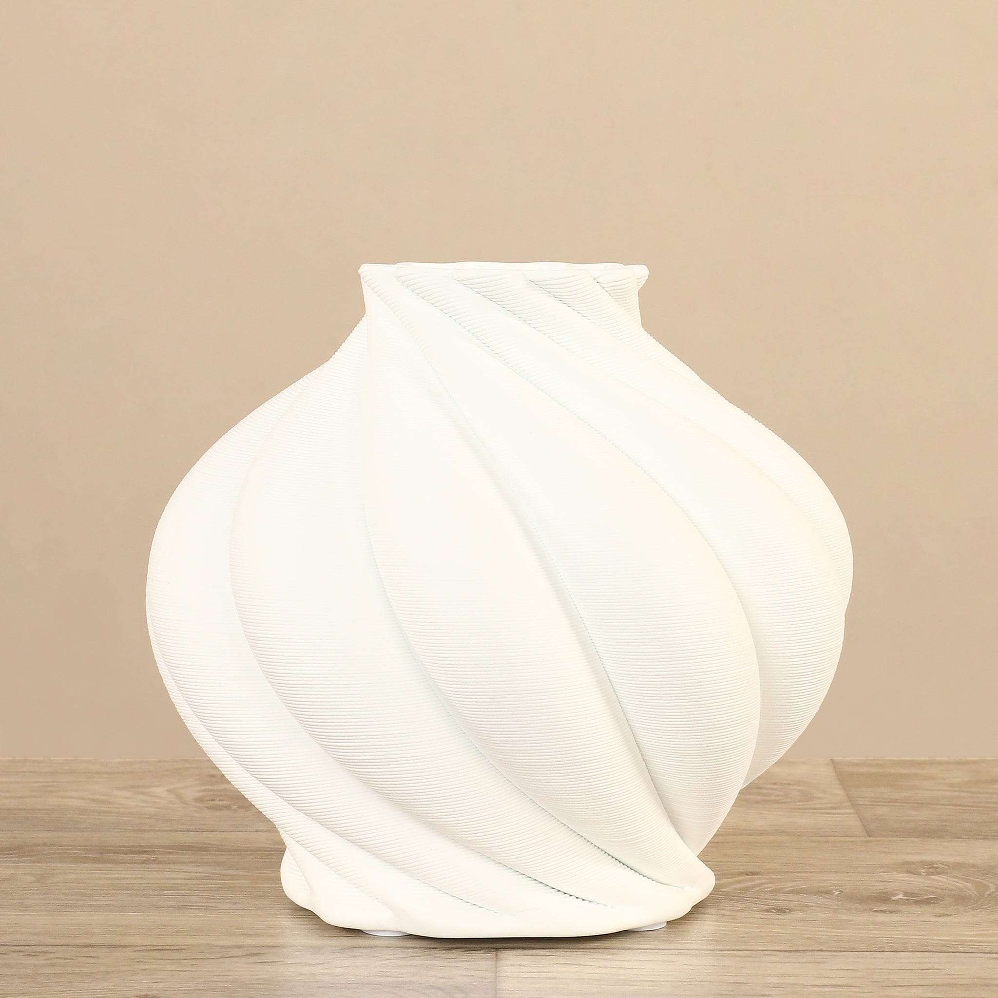 البساطة والأناقة تلتقيان في هذه المزهرية الخزفية. مصنوعة من السيراميك، ذات تصميم دائري ينحني ويلتف ليمنحها مظهراً معاصراًٍ وأنيقاً وبسيطاً في آنٍ واحد. حجمها مثالي للعرض على الرفوف أو الطاولات، وتضفي لمسة جمالية ناعمة على أي ركن.
