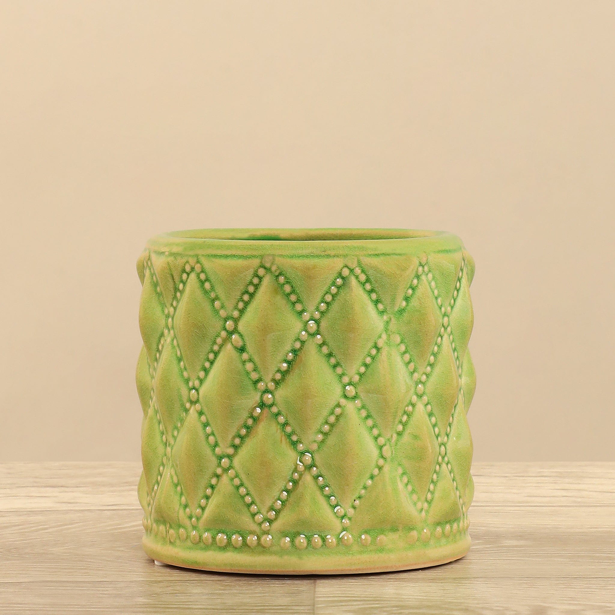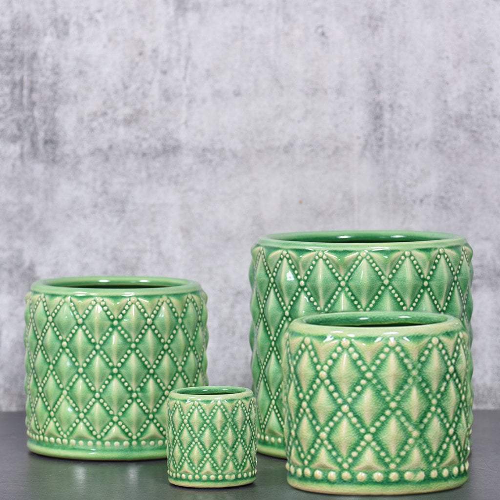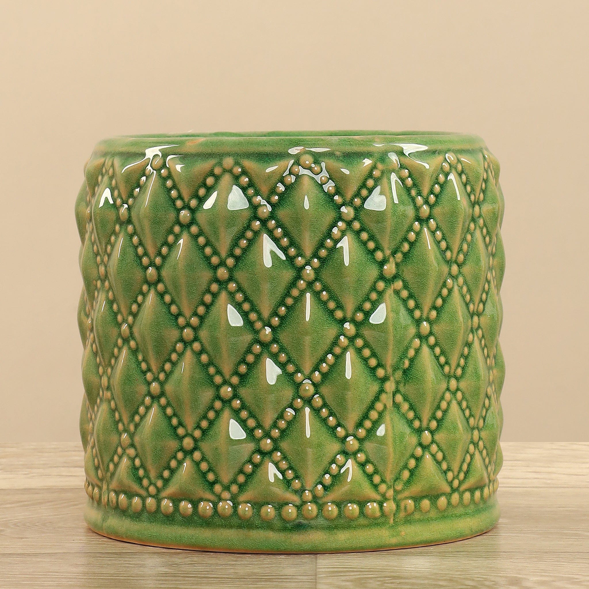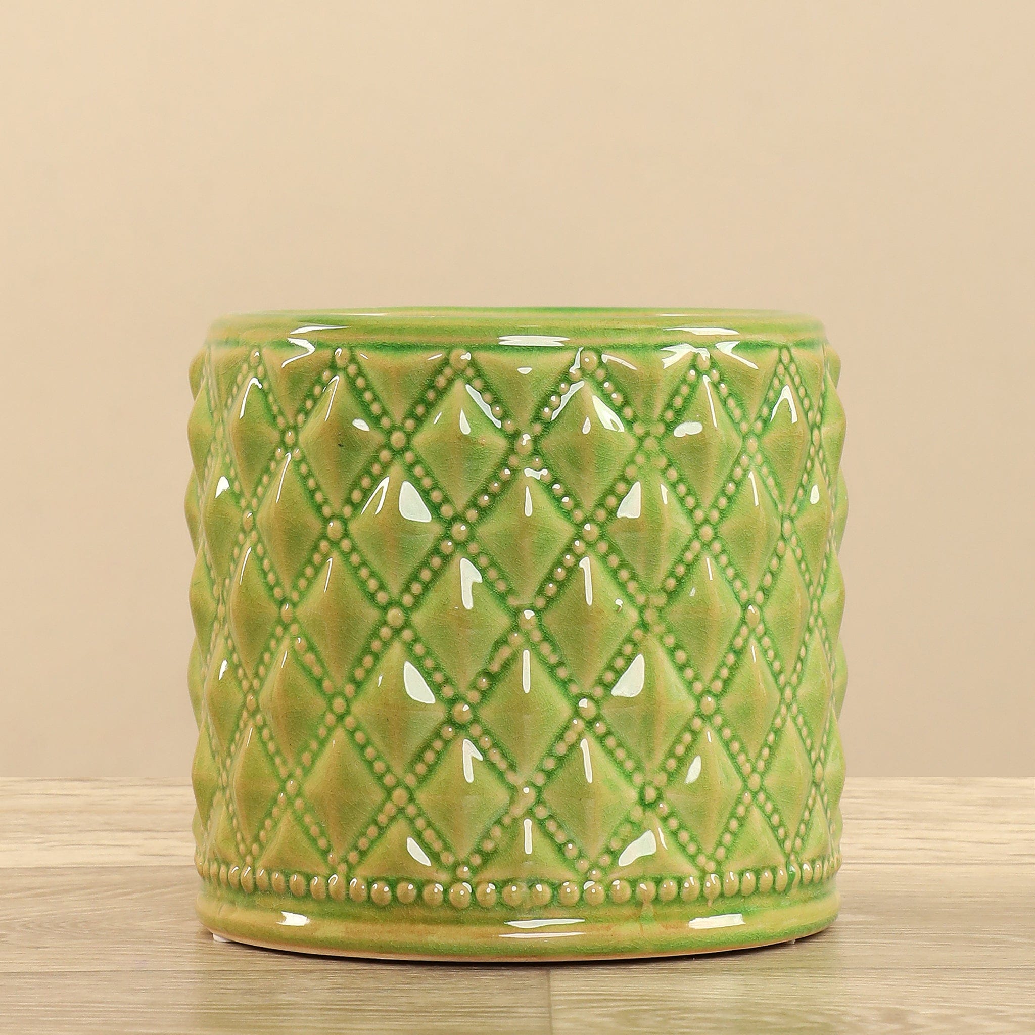 مزهرية خزفية أنيقة باللون الأخضر، تضيف لمسة طبيعية ودافئة إلى منزلك أو مكتبك. تصميمها البسيط والمعاصر يجعلها مناسبة للزهور الطبيعية أو الصناعية ولتنسيق الديكور في مختلف المساحات.