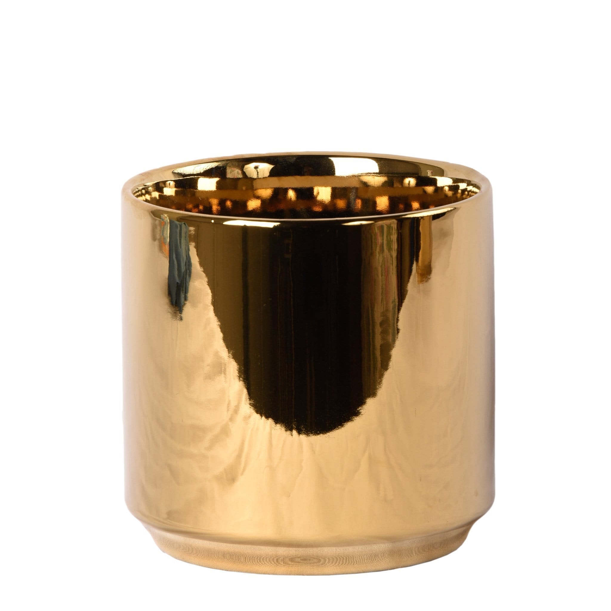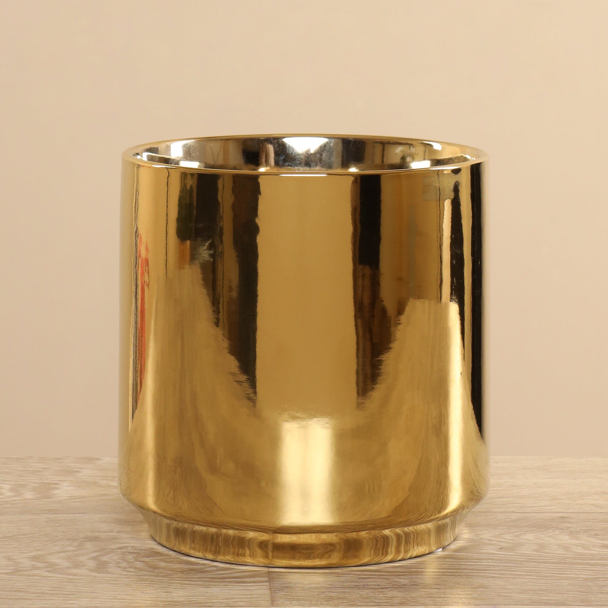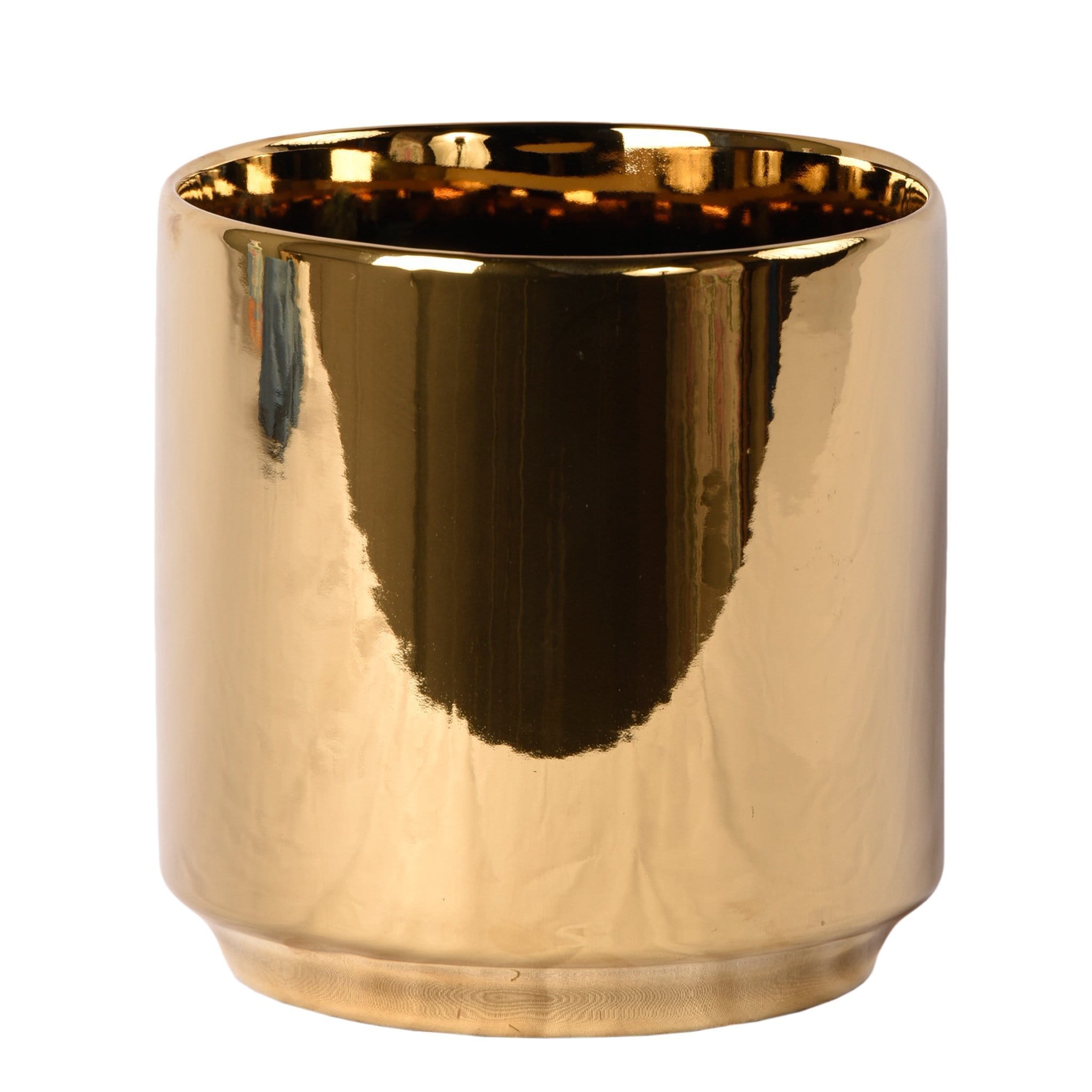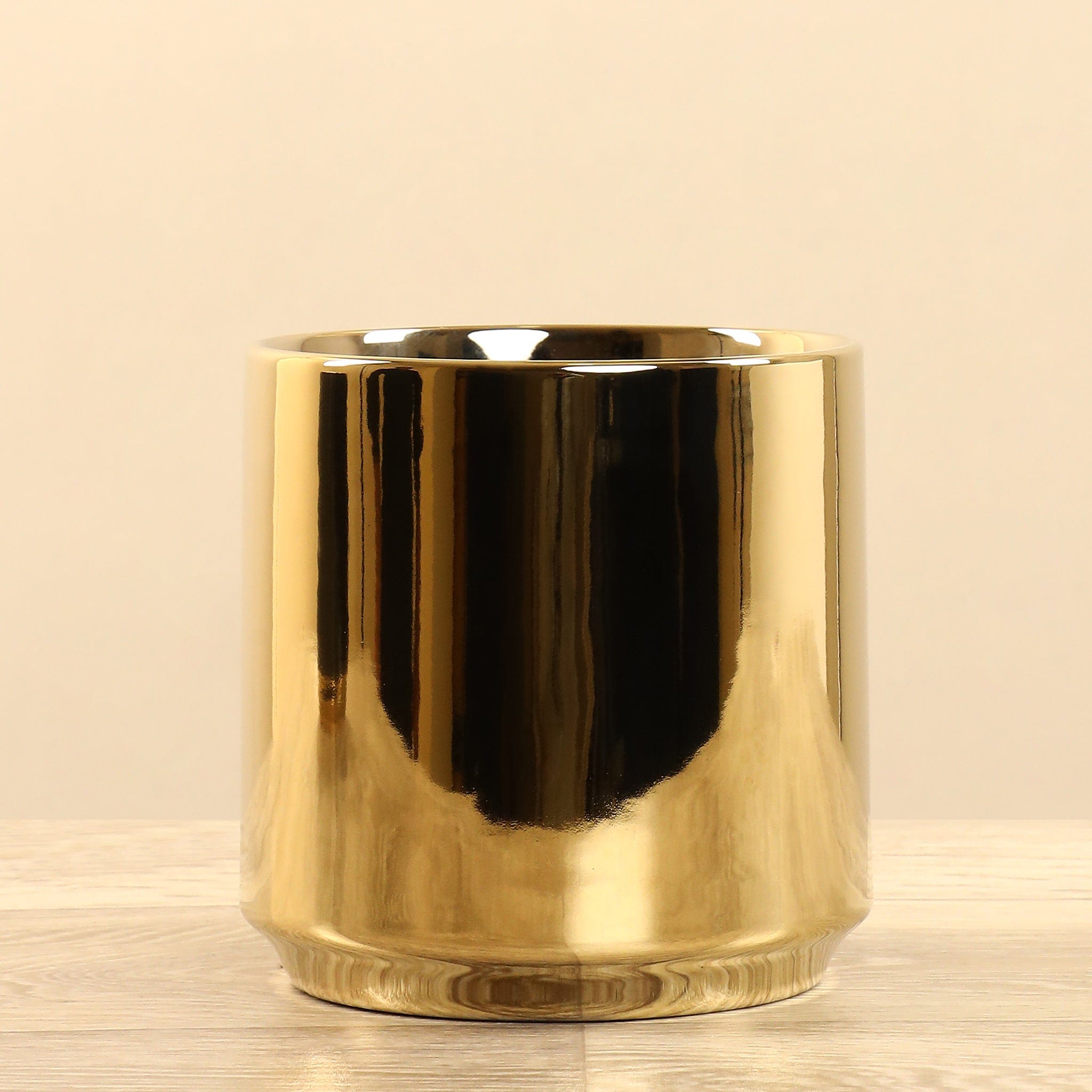 مزهرية خزفية أنيقة باللون الذهبي، مناسبة لتنسيق الورود الطازجة أو كقطعة ديكور تضيف لمسة فاخرة إلى المنزل أو المكتب.