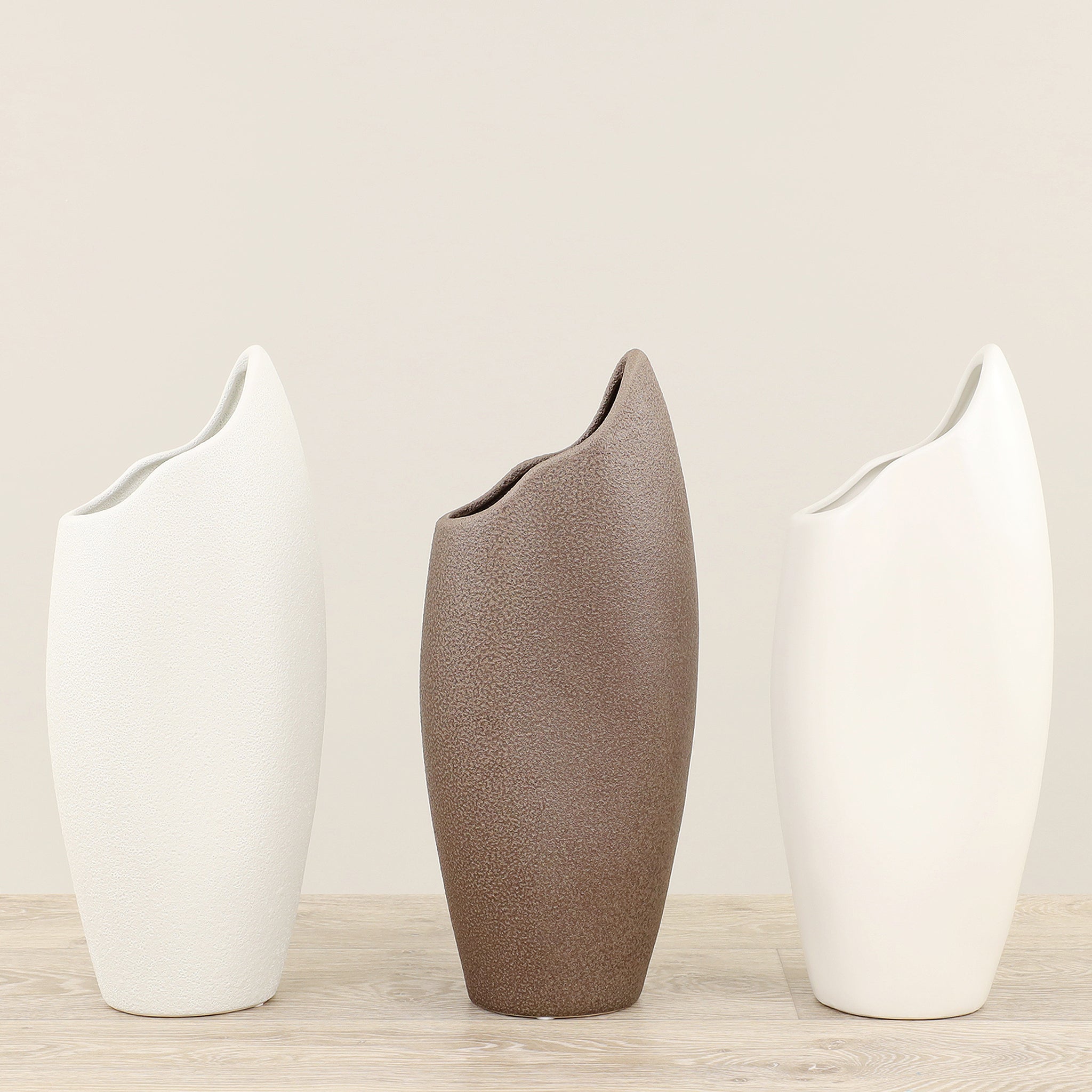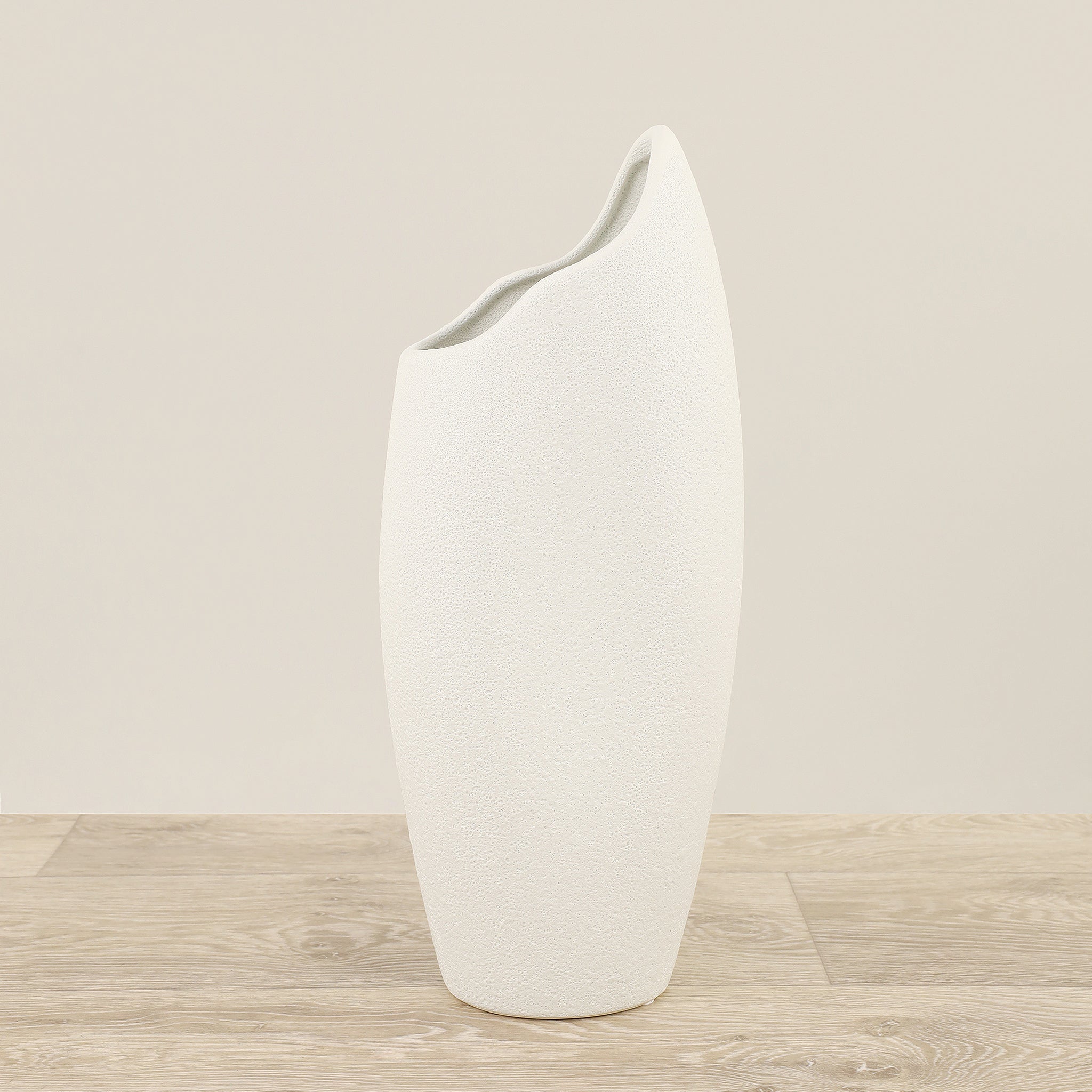 مزهرية أنيقة مصنوعة من السيراميك عالي الجودة، تصميم بسيط يضفي لمسة من الرقي على المنزل أو المكتب. مناسبة لوضع زهور طازجة أو أغصان جافة كقطعة ديكور جاذبة للنظر.