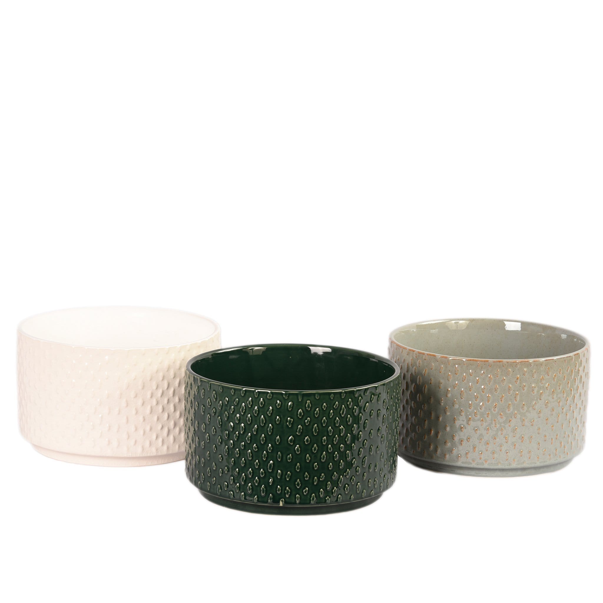 مزهرية سيراميك بتصميم دائري أنيق ومتناسق، متوفرة بألوان هادئة تناسب مختلف أنماط الديكور: أخضر، أبيض، ورمادي. قطعة عملية وجمالية يمكن استخدامها لعرض الزهور الطازجة أو النباتات الصغيرة، أو كعنصر زخرفي مستقل لإضفاء لمسة من الرقي على المساحات الداخلية.