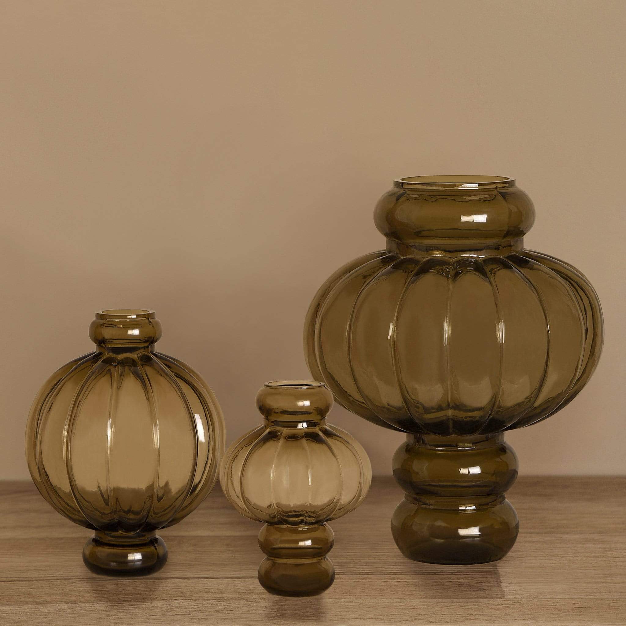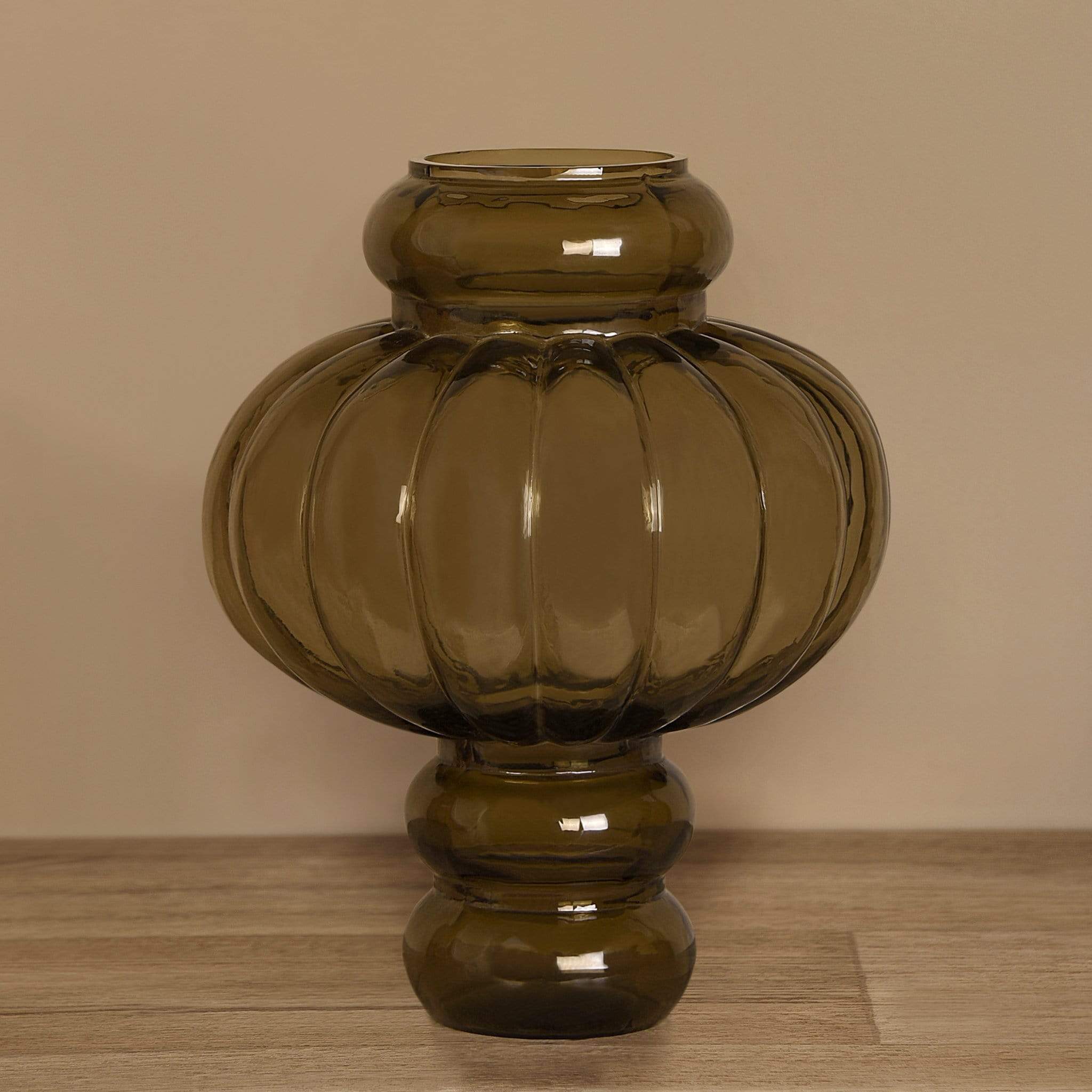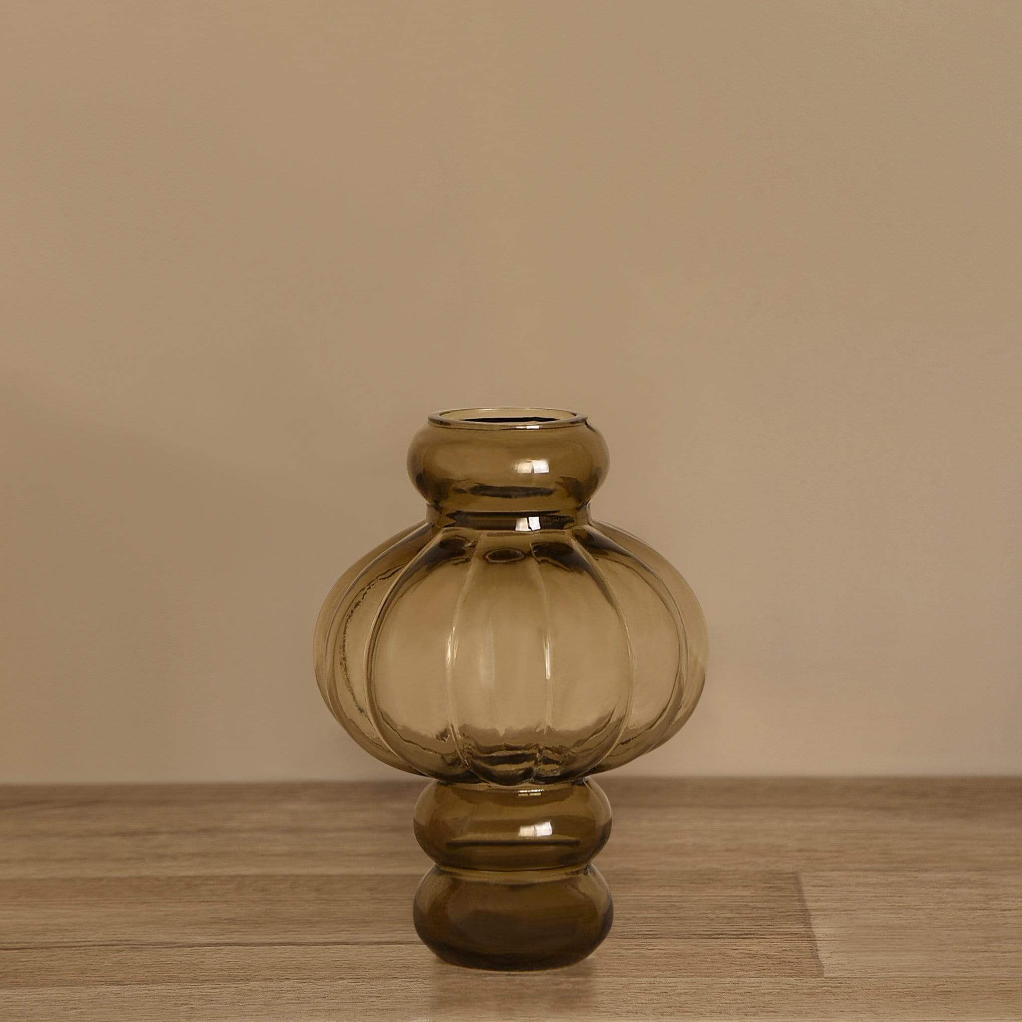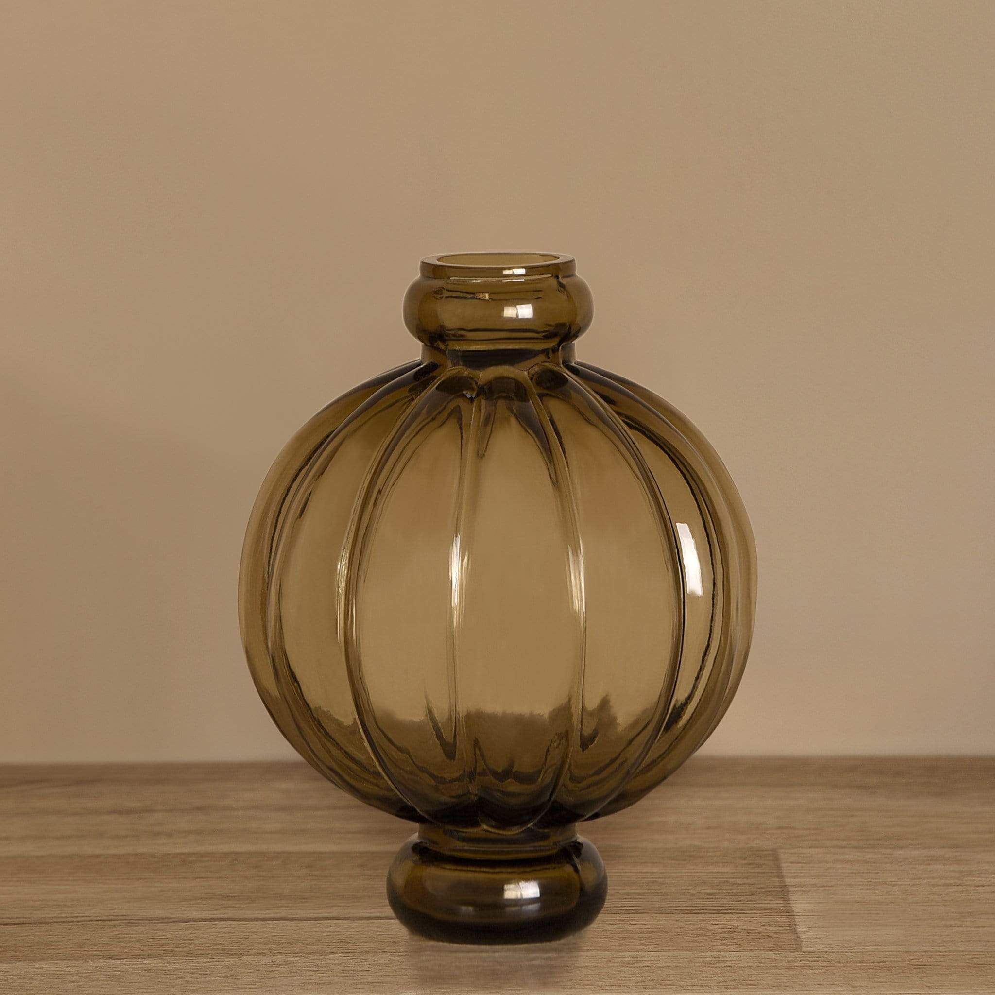 مزهرية زجاجية أنيقة بلون بني محروق تضيف لمسة دفء وعمق لديكور المنزل أو المكتب.