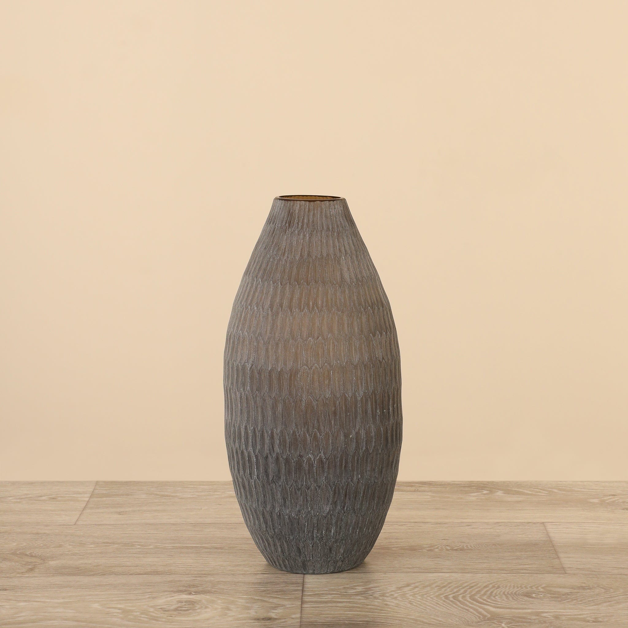 مزهرية أنيقة وبسيطة مستوحاة من شكل الزجاجة التقليدية، تضيف لمسة عصرية ودافئة إلى أي مساحة بفضل لونها المدخن الشفاف وتصميمها المنحني. مناسبة لتنسيقات زهور قصيرة وطويلة، كما تعمل كقطعة ديكور مميزة لوحدها.