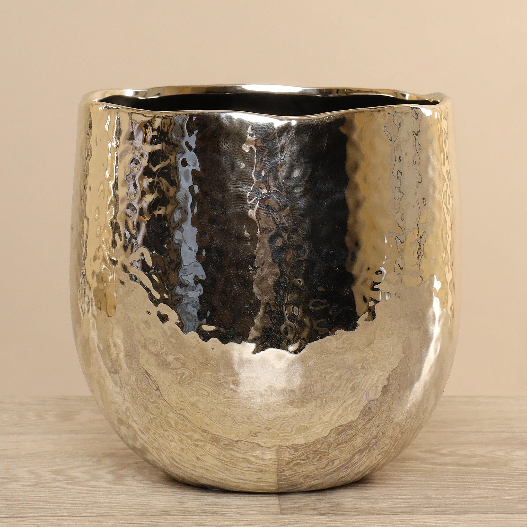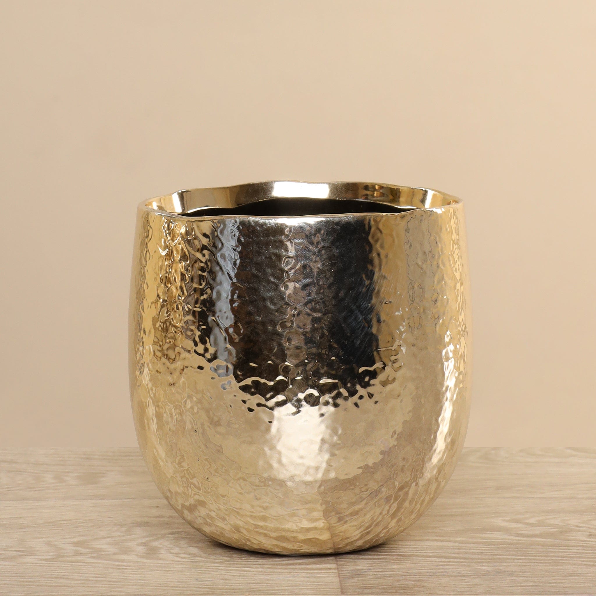 مزهرية خزفية أنيقة بلمسة فضية عصرية، مثالية لعرض الزهور الطازجة أو الجافة. تصميمها البسيط يناسب ديكورات المنزل والمكتب ويعتبر خيارًا رائعًا كهدية.
